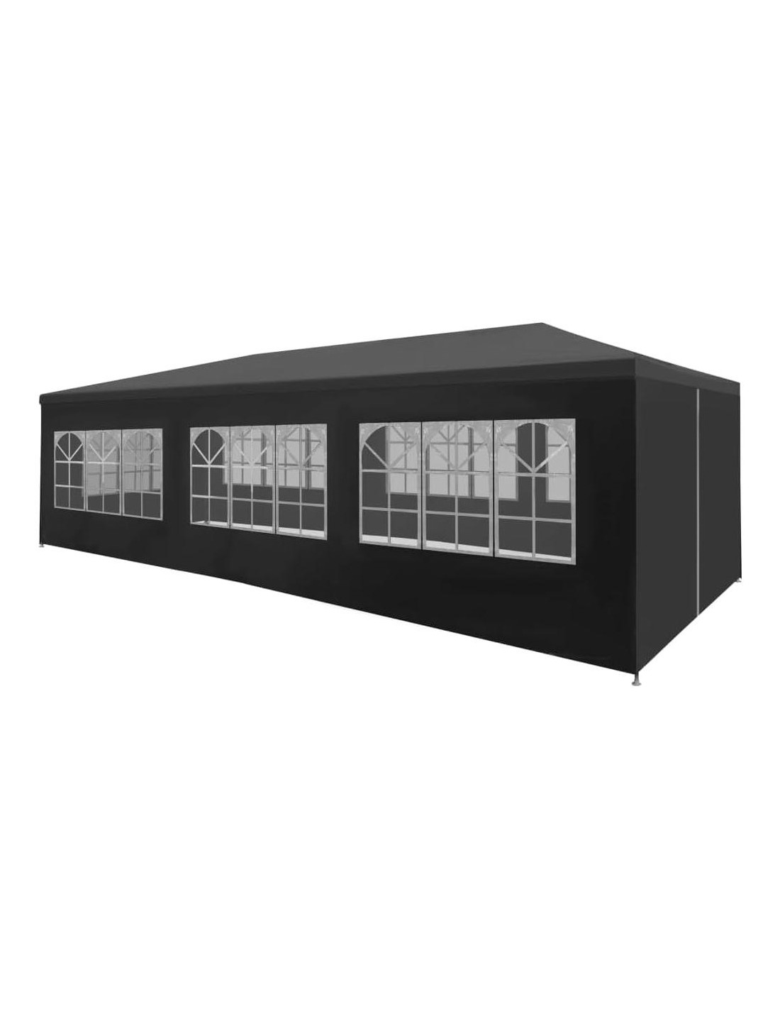 Nuestra carpa de fiesta proporciona un lugar maravilloso para entretener a su familia y amigos en todo tipo de fiestas y reuniones al aire libre. La marquesina de jardín está hecha de material de polietileno resistente a los UV y al agua, por lo que es muy práctica para uso al aire libre. El marco está fabricado con acero resistente a la corrosión, lo que hace que la carpa al aire libre sea estable y duradera. La carpa de fiesta tiene paneles laterales, cada uno con ventanas decorativas, y 1 panel de puerta con cremallera para un fácil acceso. El gazebo de jardín es fácil de ensamblar. NOTA: Este producto NUNCA debe usarse bajo mal tiempo, como viento fuerte, lluvia intensa, nieve, tormenta, etc. Color: Antracita Material: Techo y paneles laterales de PE + marco de acero Dimensiones: 29.5' x 9.8' x 8.4' (L x A x A) Altura del alero desde el suelo: 6.6' (2.01 m) Resistente a UV y agua Materiales de montaje incluidos Tela: Poliéster: 100% Jardín / Jardín y Jardín / Vida al Aire Libre / Estructuras al Aire Libre / Toldos y Gazebos