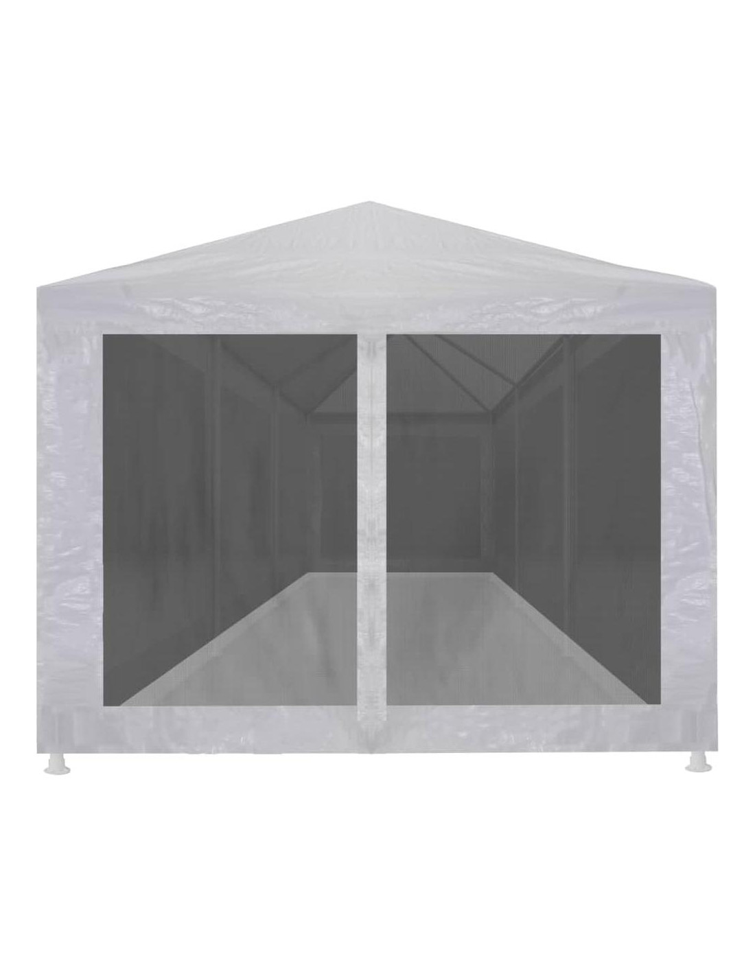Hogar y Jardín / Césped y Jardín / Vida al Aire Libre / Estructuras al Aire Libre / Toldos y Gazebos Nuestra carpa de fiesta con paredes laterales de malla es perfecta para cualquiera que quiera tener una sensación de aire libre pero no quiere lidiar con insectos al realizar actividades al aire libre. Esta carpa de fiesta será ideal para una amplia gama de eventos al aire libre, como espectáculos, bodas, fiestas, barbacoas, festivales, etc. Hecha de acero de alta resistencia con recubrimiento en polvo, esta carpa es extremadamente duradera. La cubierta del techo está hecha de PE de alta calidad, lo que la hace resistente al agua y a los rayos UV. La carpa tiene ocho paredes laterales de malla, que te protegen de los molestos insectos. Y una de las paredes laterales tiene una entrada con cremallera para un fácil acceso. La carpa es fácil de instalar con los accesorios de montaje incluidos. NOTA: Este producto NO debe usarse nunca bajo mal tiempo, como viento fuerte, lluvia intensa, nieve, tormentas, etc. Color: Blanco y negro Material: PE (polietileno), acero con recubrimiento en polvo Dimensiones: 9.0 m x 3.0 m x 2.6 m (L x A x A) Altura del alero desde el suelo: 2.0 m Resistente a los rayos UV y al agua 8 paredes laterales de malla, una de las cuales tiene una entrada con cremallera La entrega incluye accesorios de montaje