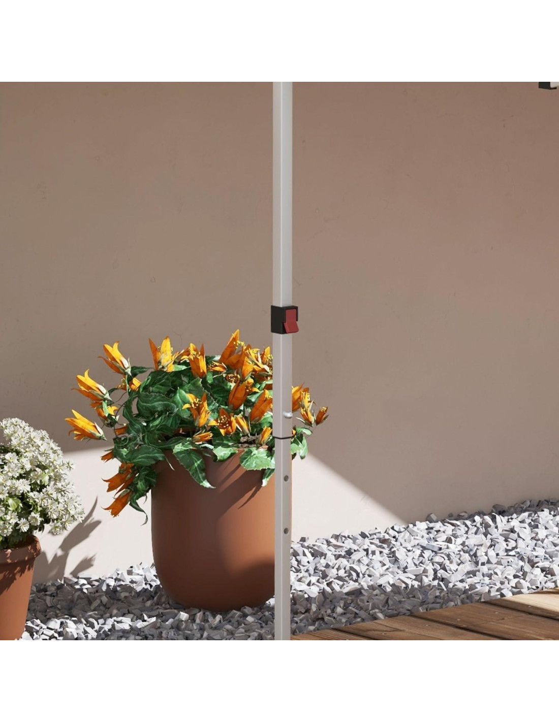 - Carpa de Altura Personalizable: Personaliza fácilmente la altura de tu carpa para adaptarse a la ocasión. Nuestra carpa con paredes laterales tiene patas ajustables en altura que se bloquean en su lugar con solo presionar un botón, permitiéndote subir o bajar entre tres configuraciones de altura.