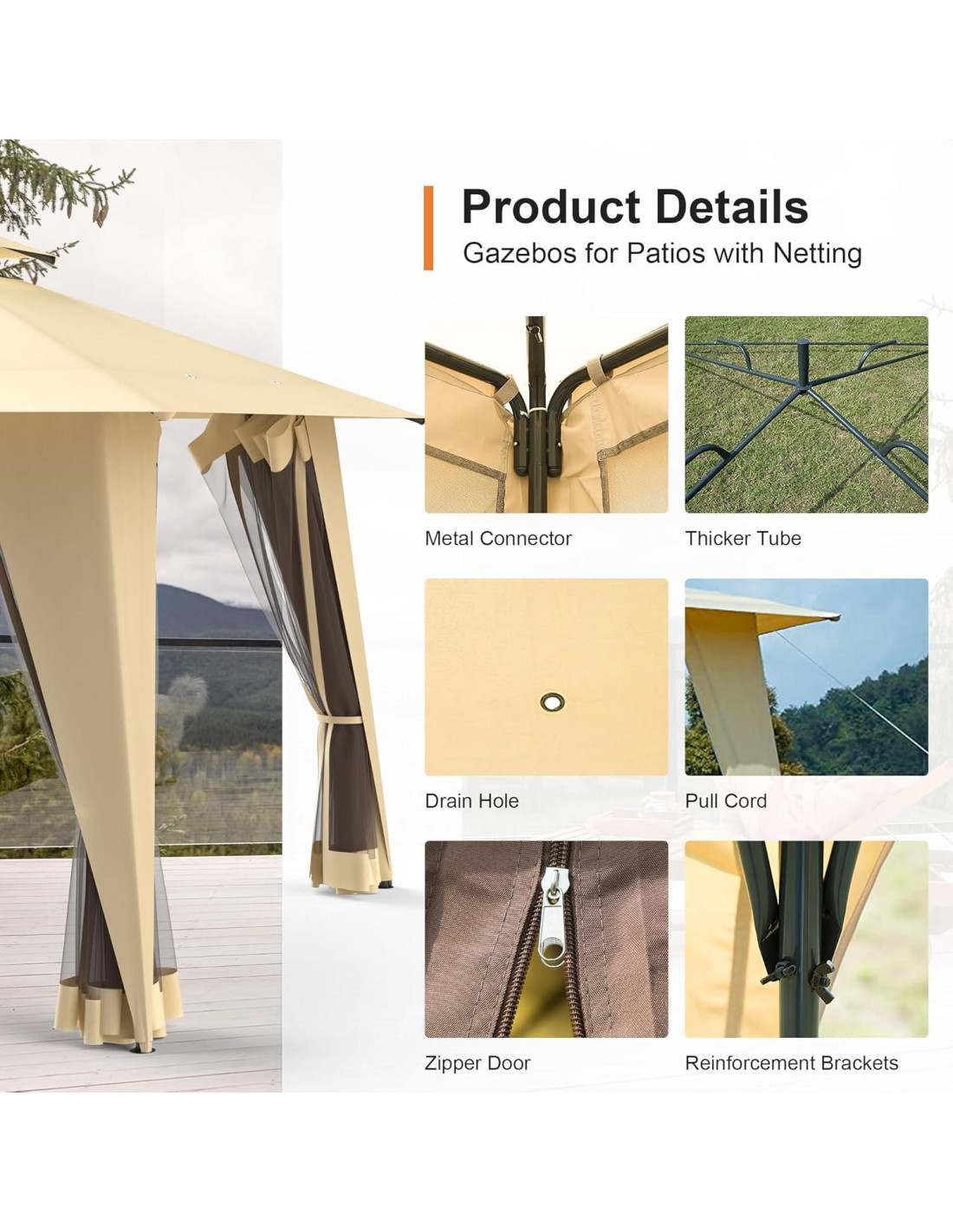 - Malla de calidad superior de 30g y cremalleras añaden a la gazebo exterior, completamente cerrado para mantenerte alejado de cualquier insecto.