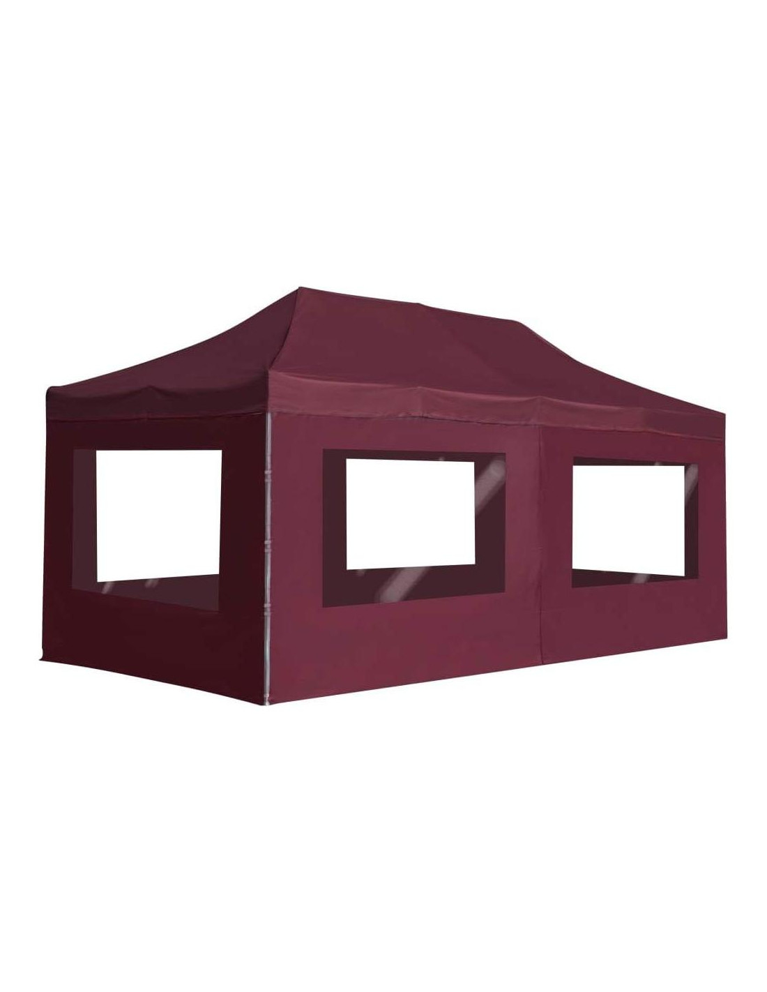 Jardín y Césped / Vida al Aire Libre / Estructuras al Aire Libre / Toldos y Gazebos Agrega un elemento cómodo y sofisticado para impresionar a tus invitados con nuestra carpa de fiesta profesional. Con un diseño clásico y elegante, esta carpa de fiesta proporciona el refugio perfecto contra el sol para eventos al aire libre, como cenas, barbacoas, reuniones familiares, etc. Hecha de tela Oxford con recubrimiento de PVC, el techo te protegerá del deslumbramiento y de los dañinos rayos UV de la luz solar directa. El marco resistente está sólidamente construido de una aleación de aluminio resistente a la corrosión y de alta resistencia. La carpa de fiesta tiene paneles laterales, y cada uno de ellos está decorado con ventanas de PVC. Además, el diseño ligero y plegable asegura que sea fácil de mover, transportar y almacenar cuando no esté en uso, lo que la convierte en una excelente opción para cualquier evento al aire libre. La entrega también incluye materiales de montaje para una instalación fácil y segura. Para obtener una carpa de fiesta al 100%, o si la carpa está expuesta a fuertes lluvias, recomendamos tratar la carpa con spray. Este producto NUNCA debe usarse bajo mal tiempo, como viento fuerte, lluvia intensa, nieve, tormenta, etc. Color: Rojo vino Material del marco: Aleación de aluminio Material del techo: 1 oz/ft tela Oxford con recubrimiento de PVC Material de la pared: tela Oxford 210D con ventanas de PVC Dimensiones generales: 18.9' x 9.5' x 10.1' (L x A x A) Dimensiones del poste de pie: 1.2" x 1.2" x 89.8" (L x A x A) Peso del marco: 36.2 lb (16.4 kg) Fácil de llevar 100% Presenta un diseño plegable Resistente Materiales de montaje incluidos