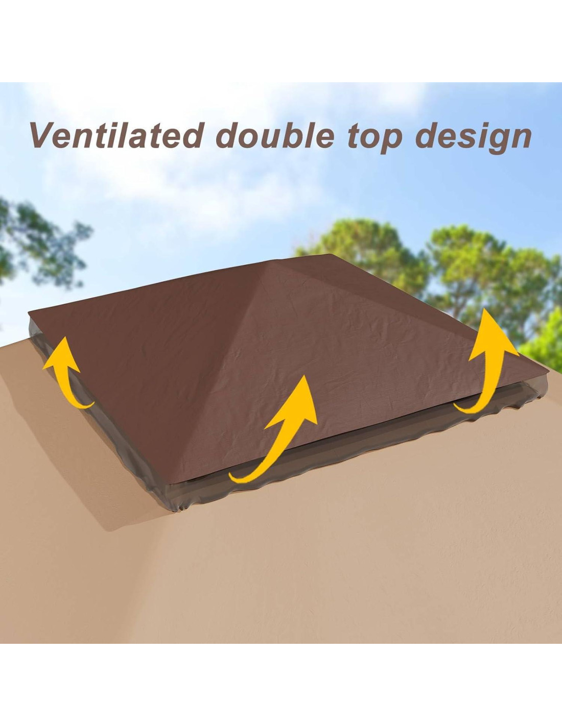- Diseño de Techo Doble: El gazebo cuenta con un diseño de techo doble, proporcionando una mejor ventilación y disipación del calor, mientras mejora la durabilidad y estabilidad en diversas condiciones climáticas.
