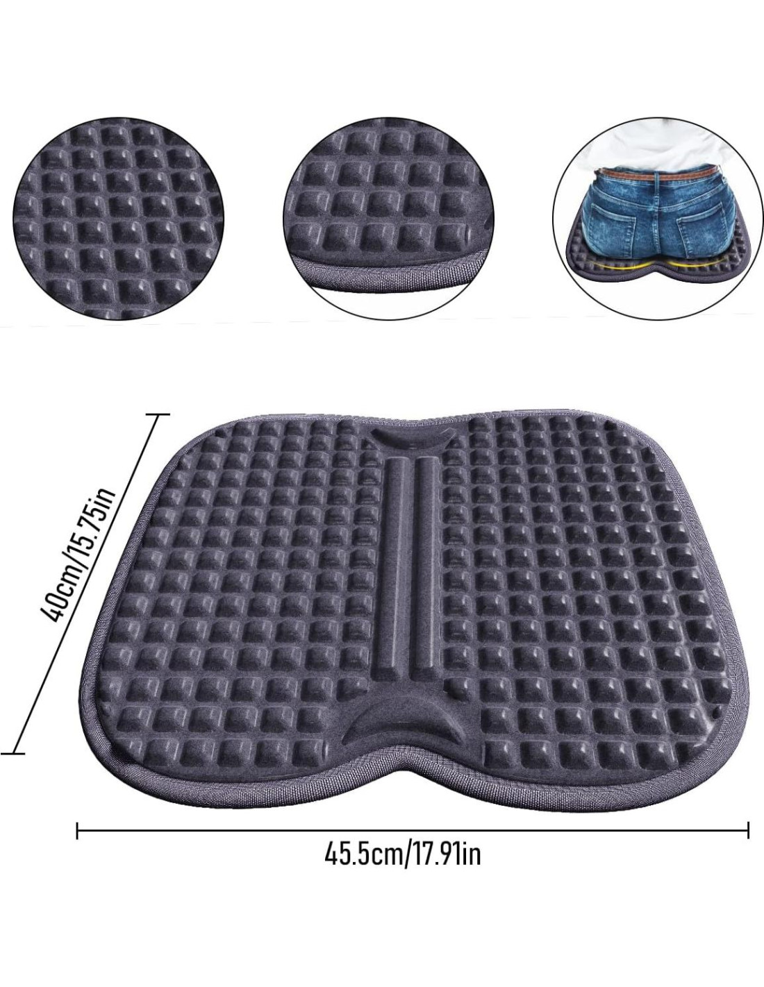 - Diseño Ergonómico: Nuestros cojines están diseñados ergonómicamente. La estructura tridimensional en la parte frontal del cojín disipa el calor mientras distribuye y absorbe la presión para aliviar la ciática, el dolor de coxis, el dolor de glúteos, el dolor de cadera y el dolor de coxis.