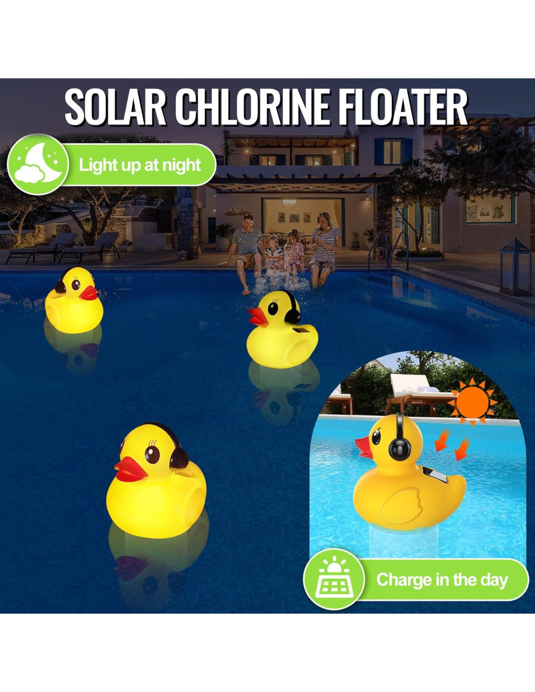 - Flotador de Cloro para Piscina con Luces Patentado: Producto Patentado: Números de Patente de EE. UU. US 11,333,344 B1 y ZL202430108994.3 Nuestro flotador de cloro equipado con un panel solar incorporado, captura la energía del sol durante el día para iluminar su piscina por la noche. Este dispensador de cloro flotante para piscina no solo cumple su propósito esencial, sino que también añade una encantadora decoración nocturna. El distintivo diseño de pato sirve como un encanto adicional, mejorando la estética de su piscina