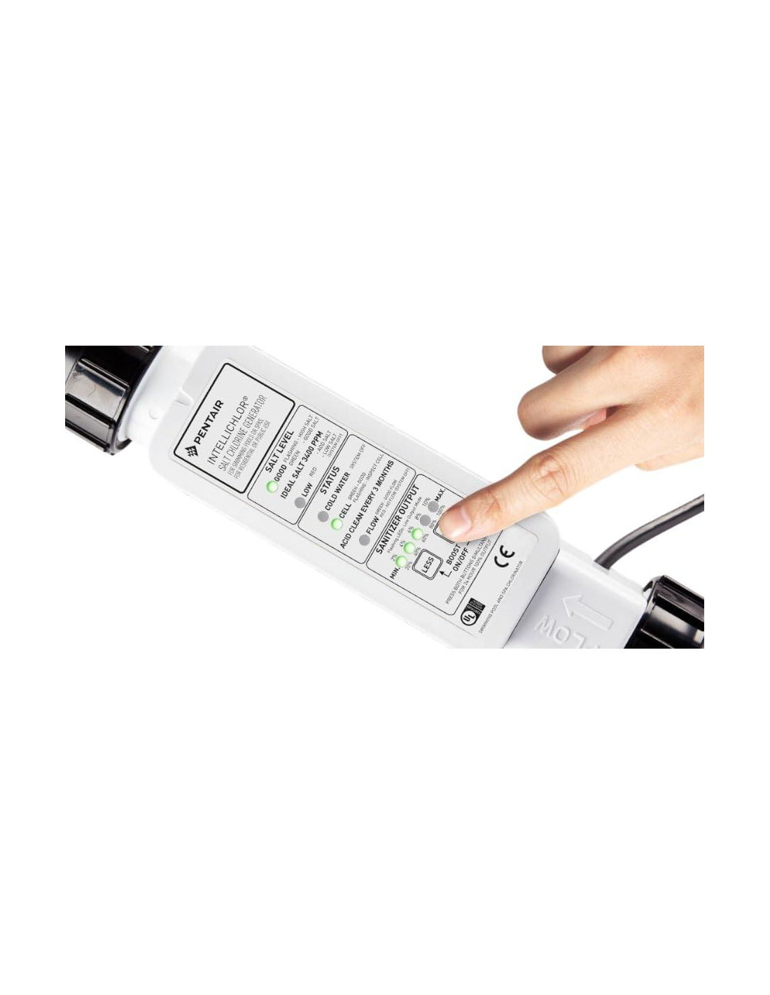 Pentair aprovecha al máximo los recursos esenciales de la vida, desde agua de gran sabor directamente del grifo de la cocina, hasta la gestión de agua industrial y en todas partes entre ellos. Ofrecemos soluciones que ayudan a las personas y al agua, y aplicaciones sostenibles que ayudan a garantizar la salud del mundo. El agua de piscina y spa cristalina invita a un estilo de vida saludable y activo. Las soluciones de Pentair están diseñadas para filtrar y limpiar el agua, mientras que el equipo de automatización facilita el control desde cualquier lugar para que realmente puedas disfrutar de tu piscina y spa. IntelliChlor utiliza sal común de mesa para producir de manera efectiva y automática el cloro que necesita una piscina. Proporciona el mismo rendimiento de saneamiento que los aditivos de cloro sin las desventajas del manejo del cloro. Ahora hay una alternativa al manejo y almacenamiento de cloro. Capacidades de diagnóstico completas, incluyendo seguimiento de la vida útil de la celda que comunica las horas restantes de vida útil de la celda en tiempo real. Operación con un solo botón y pantallas fáciles de ver permiten una rápida verificación del nivel de sal, estado del sistema y salida de cloro. El ciclo a tiempo previene la acumulación de calcio y sarro para maximizar la vida útil de la celda. Compatible con un sistema de automatización Pentair, como un Sistema de Control de Piscina IntelliCenter. Con IntelliChlor, puedes elegir entre uno de cinco niveles. Solo presiona el botón y listo. Además, IntelliChlor proporciona una alternativa al transporte, almacenamiento y manejo de cloro. También significa menos derrames de cloro y trajes de baño decolorados debido al manejo del cloro. La función de apagado automático protege la unidad y prolonga la vida útil de la celda en condiciones de baja temperatura del agua. El agua y la sal disuelta fluyen a través de la celda generadora. A través de la electrólisis se convierte en cloro. El agua clorada se devuelve a la piscina. Una vez que el cloro ha terminado de tratar la piscina, vuelve a convertirse en sal y el ciclo se repite. Proporciona una alternativa al transporte, almacenamiento y manejo de cloro. Menos trajes de baño decolorados debido al manejo del cloro. Reduce los derrames de cloro.
