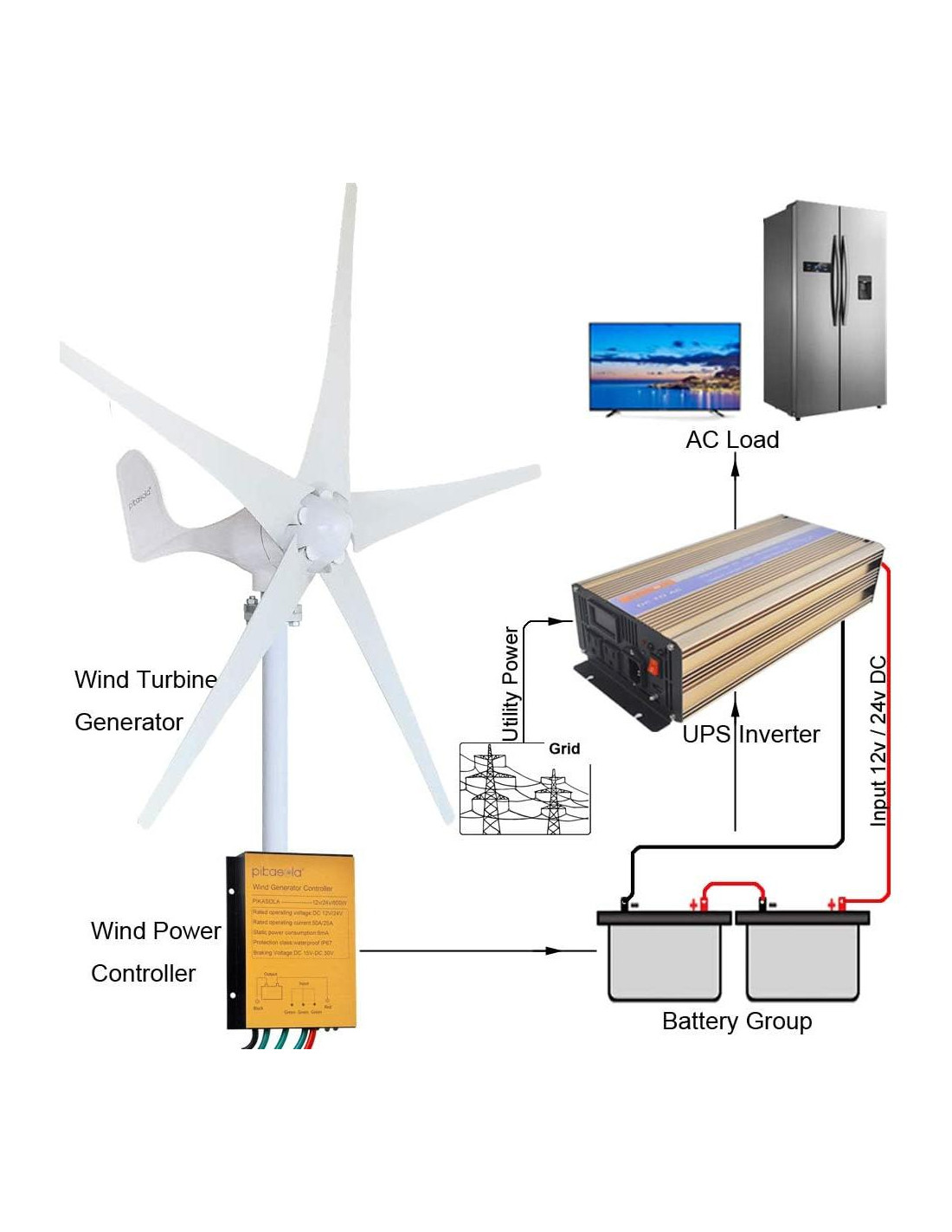 - Característica: Arranque con 2.5m/s Velocidad de viento baja; Baja vibración durante el trabajo; Alta eficiencia energética del viento. Kit de turbina eólica adecuado para barco, RV, cabaña, hogar, etc.
