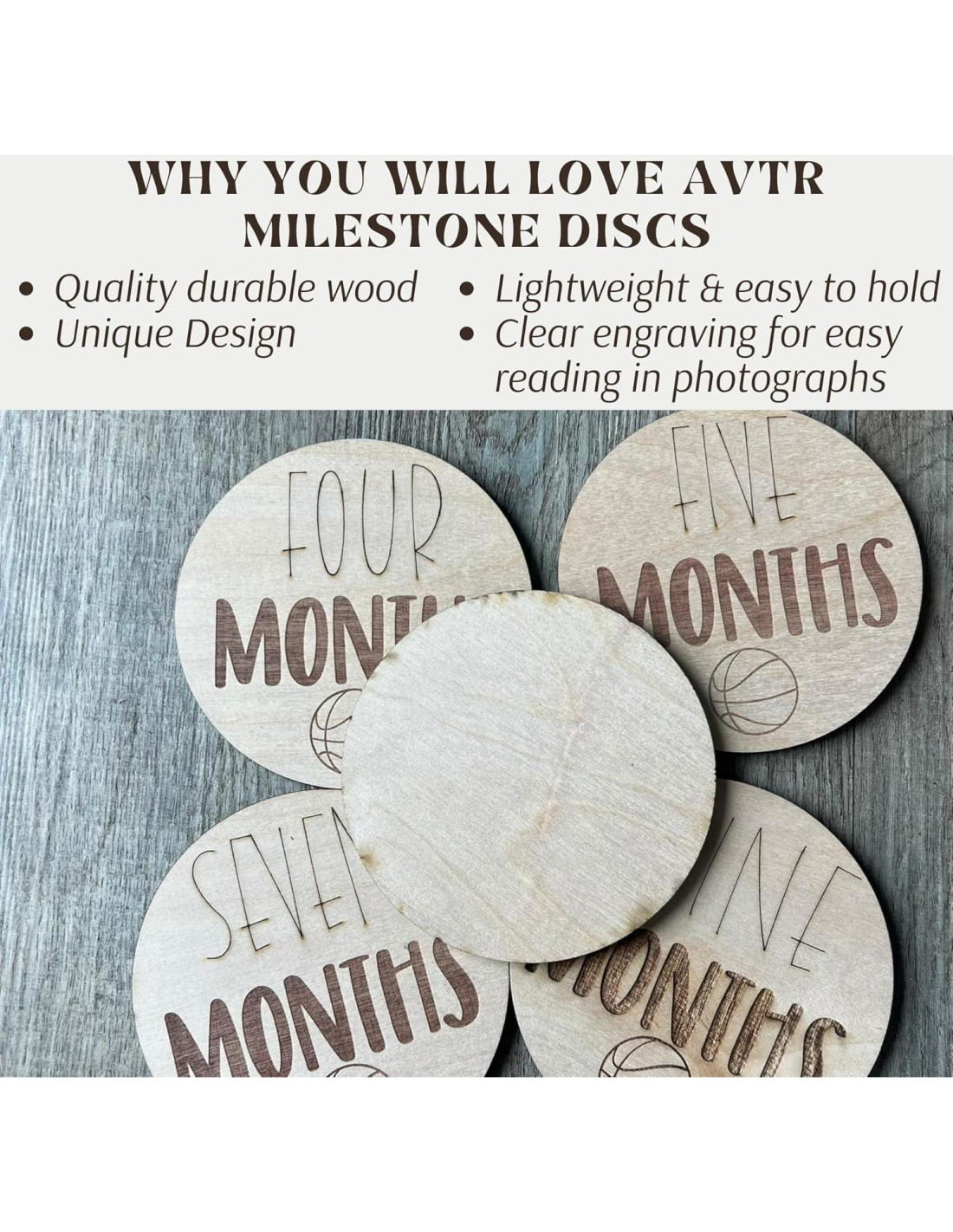 - Conjunto Completo de Hitos Mensuales - Incluye 12 marcadores de hito de madera (1-12 meses) más discos de 'Hola Mundo' y 'Un Año' para fotografía de recién nacidos y bebés.
