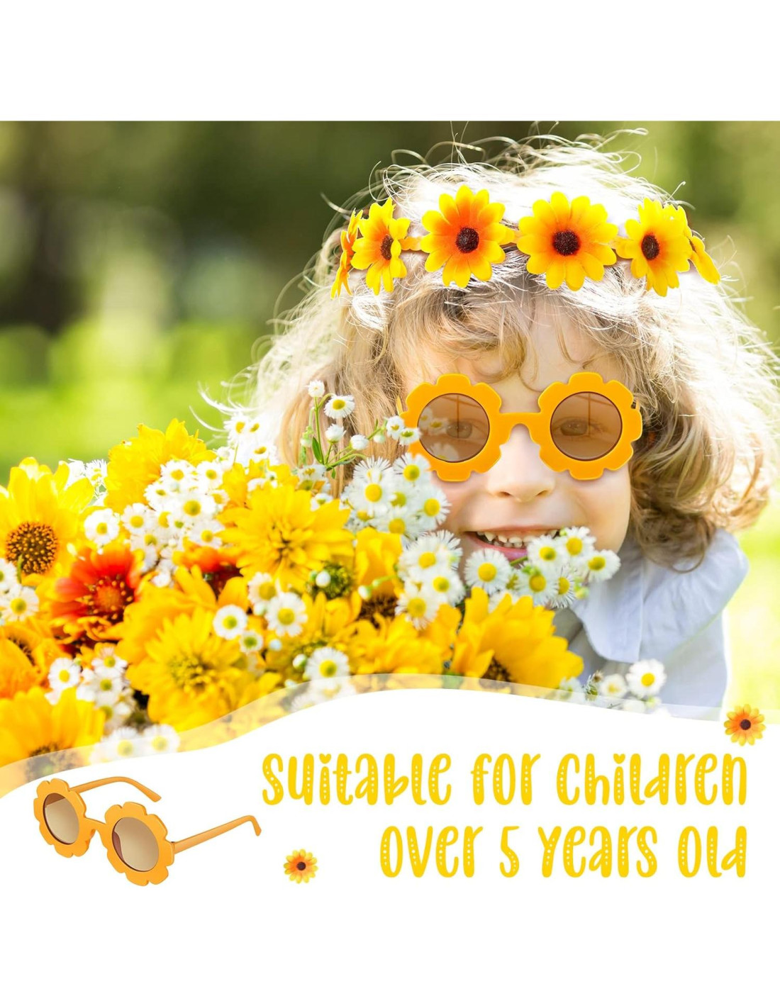 - Confiables y Cómodas: nuestras diademas de girasol están hechas de fibras de poliéster de calidad, y las gafas hippies para niños están hechas de materiales de calidad AC y PC, amigables con la piel y no fáciles de romper, cada par de gafas de sol es ligero y cómodo, permitiendo que tu hijo las use sin cargas