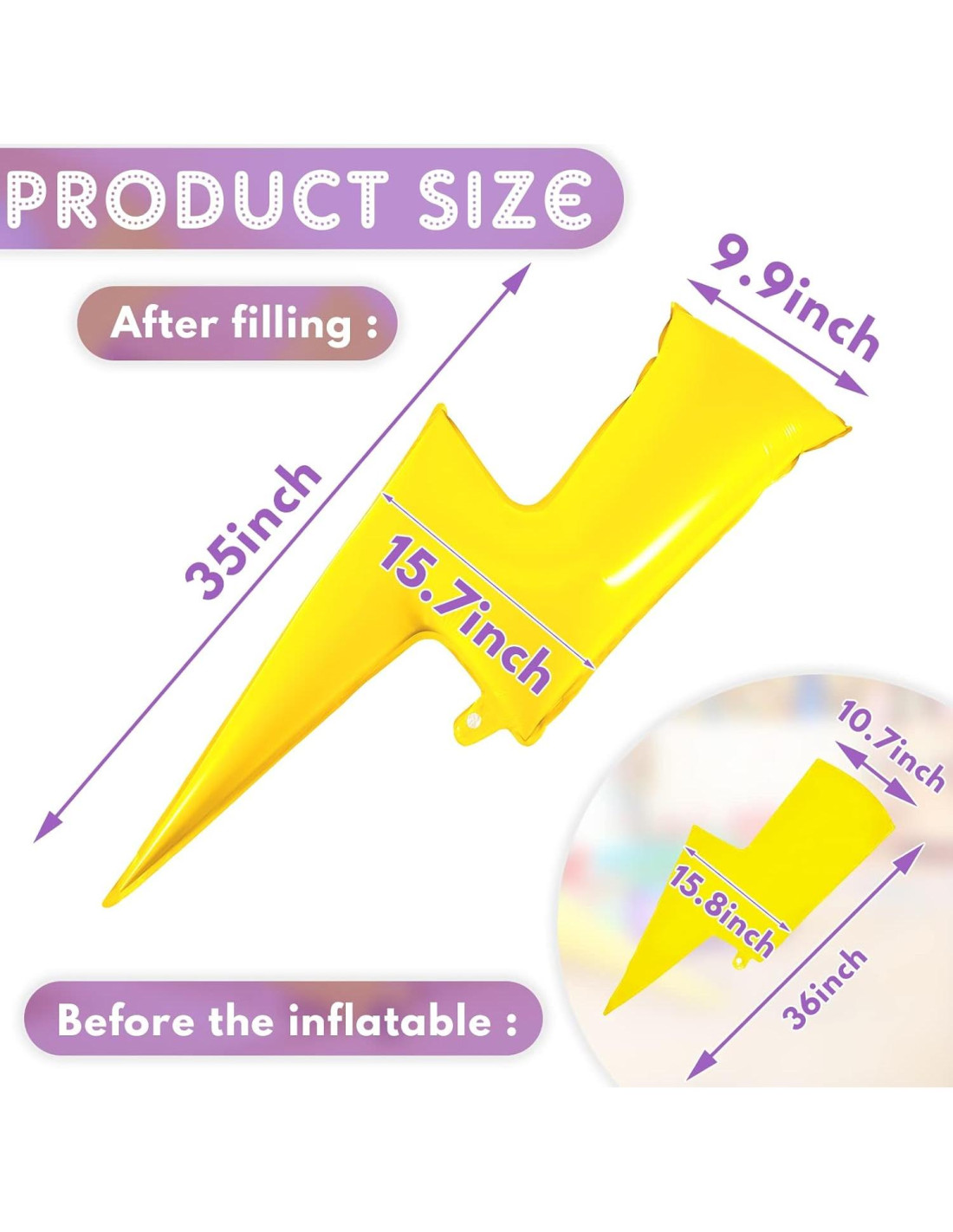 - Estilo genial: los globos de foil están diseñados con forma de rayo, que se ven geniales y encantadores, decorando la fiesta con ellos, el estilo encantador atraerá la atención de otros a primera vista y hará que tus decoraciones de fiesta sean aún más geniales, dejando a tus invitados y a ti una profunda impresión y un recuerdo inolvidable, también puedes combinarlos con otros globos de diferentes formas para hacer que todo sea más colorido, mostrando tu estilo personal