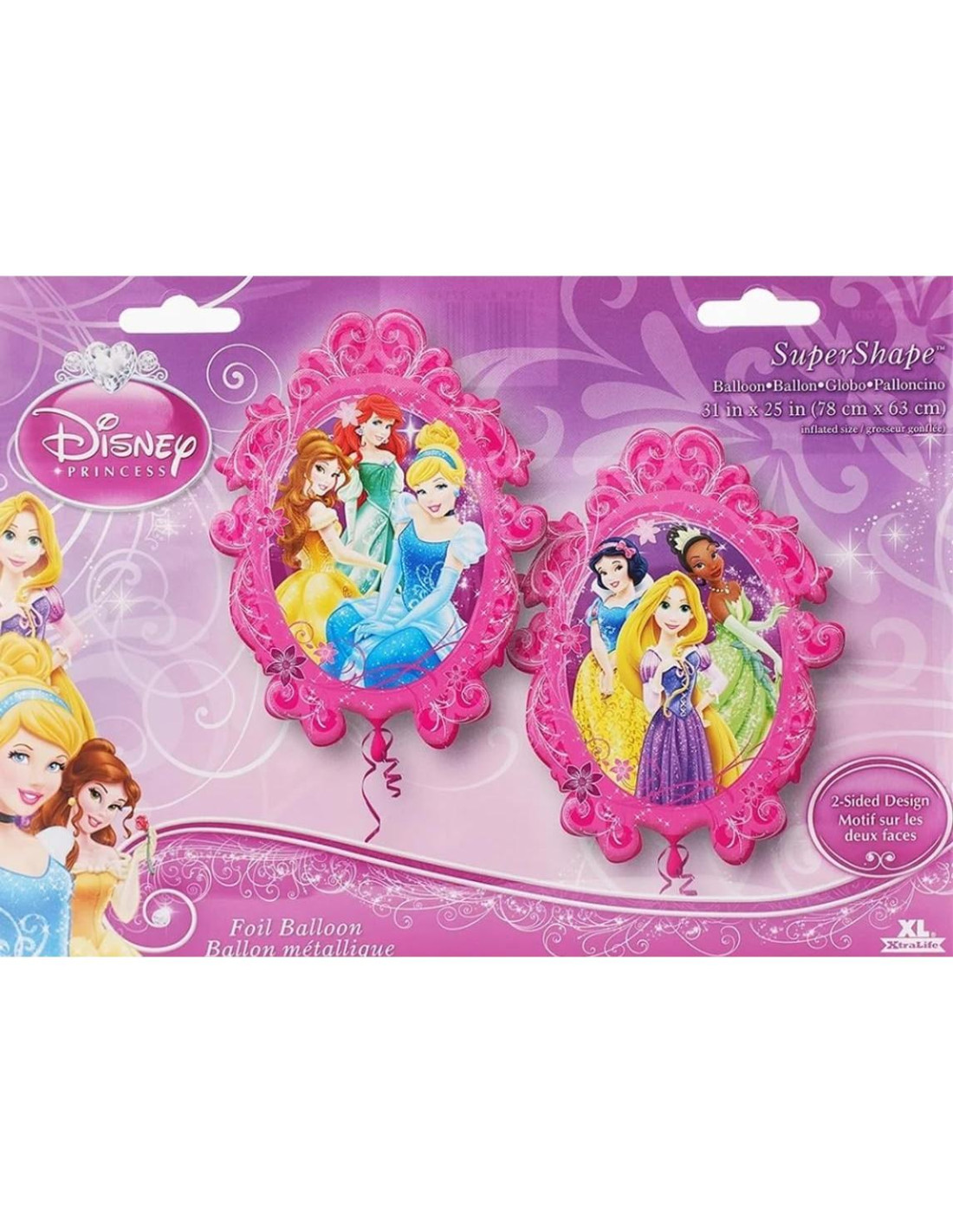 - (1) Globo de Aluminio en Forma Ovalada de Princesa de 31" (78.74 cm), (1) Globo de Aluminio en Forma de Espejo de Princesa de 31" (78.74 cm), (8) Globos de Aluminio de Princesa de 18" (45.72 cm) Ariel, Belle, Cenicienta, Jasmine, Rapunzel, Bella Durmiente, Blanca Nieves y Tiana y (2) Globo de Aluminio Cuadrado de Feliz Cumpleaños de Princesa de 18" (45.72 cm). Inflar los globos el mismo día del evento. Cinta no incluida. Todos los globos de aluminio con licencia de Anagram están hechos en EE. UU. Fundada en 1977, Anagram International lidera el mundo en la innovación y fabricación de globos de aluminio.