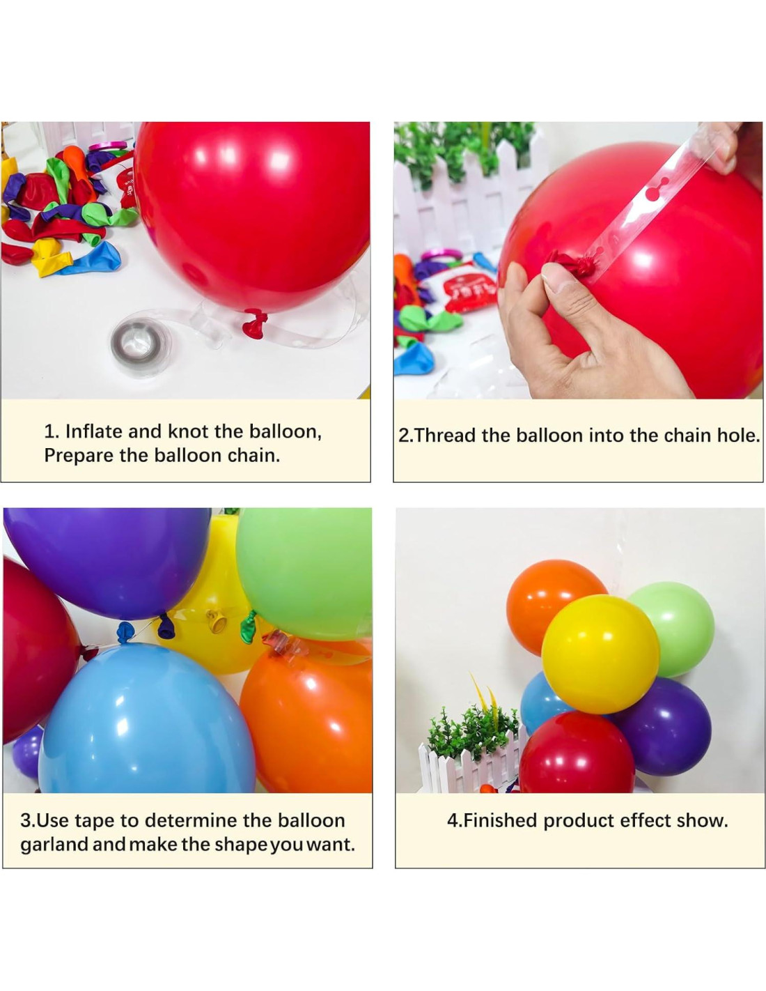 - El paquete incluye: Kit de guirnalda de globos arcoíris de colores surtidos de 103 piezas, que contiene 48 globos de 5 pulgadas, 48 globos de 12 pulgadas, 12 globos de 18 pulgadas, una cadena de globos de 5 metros, 100 puntos de pegamento, un rollo de cinta. Cada tamaño incluye globos rojos, naranjas, amarillos, verdes, azules, morados.