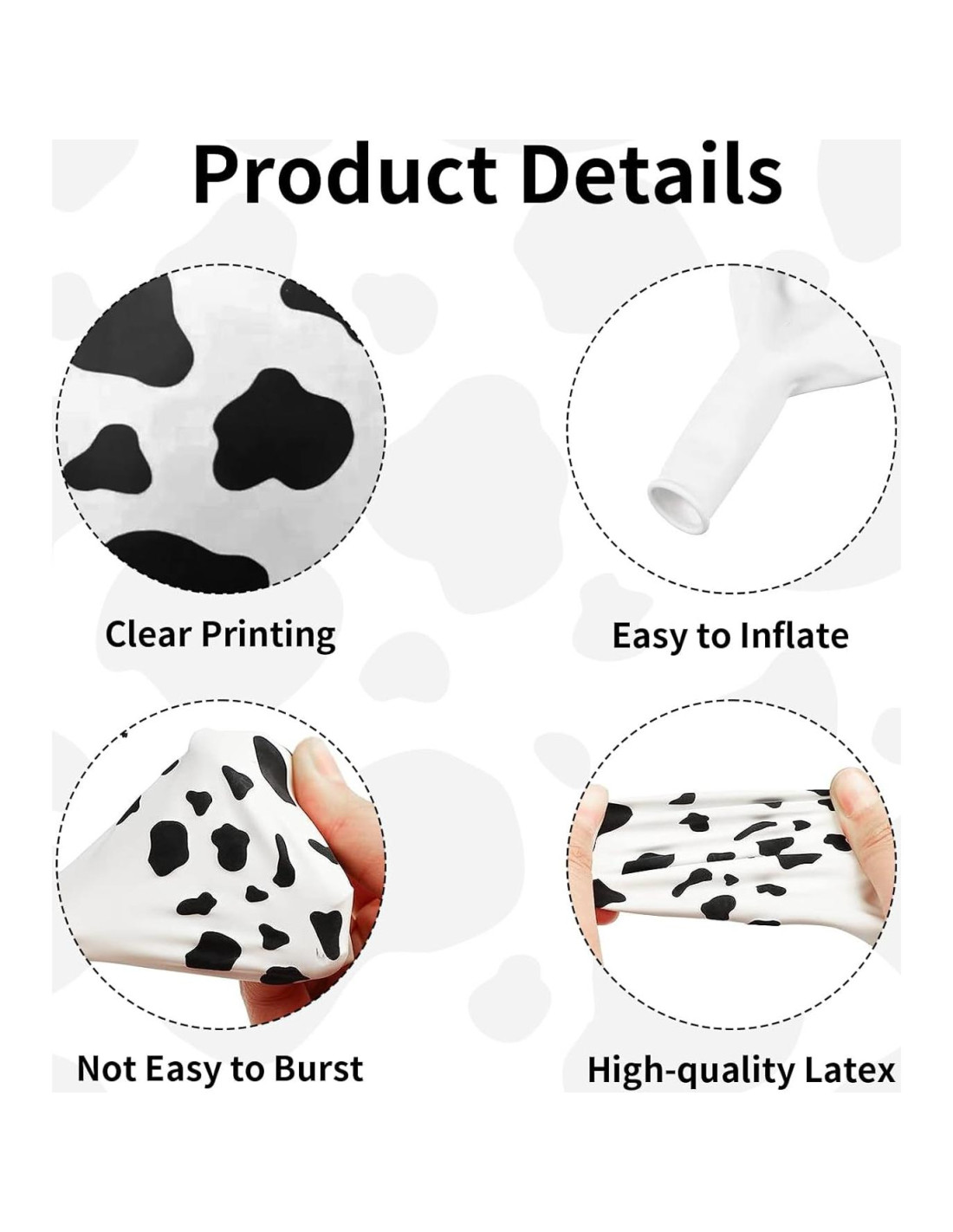 - 60PCS JUEGO DE GLOBOS CON DISEÑO DE VACA: Estos globos de látex de 12 pulgadas incluyen 60 globos de látex con diseño de vaca y 2 rollos de cinta de 10m. Estos globos de vaca vienen en un clásico color blanco y negro, añadiendo emoción y un toque festivo a tu fiesta o celebración con temática animal.