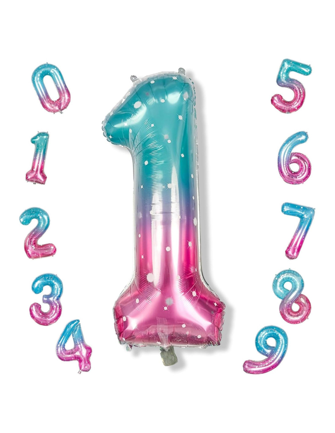 - Globos de Número 1 de Sirena: Los globos de número en color degradado azul rosa miden 40" (101,6 cm), perfectos para decoraciones de fiestas de cumpleaños. Tenemos globos de número de helio del 0 al 9, puedes comprar cualquier número y combinarlos con otros globos de número, dejando una impresión memorable en la fiesta de cumpleaños de niñas y mujeres y eventos especiales.