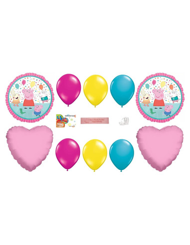 - (2) Globos de Foil en Forma de Corazón Rosa de 18 Pulgadas (45.72 cm) para la decoración de tu Fiesta Peppa Pig