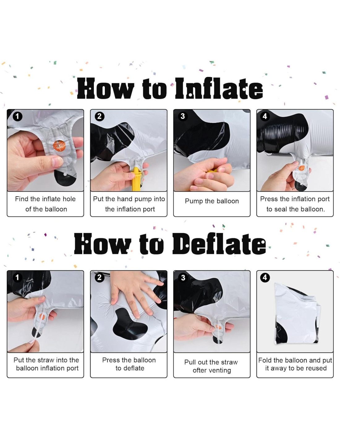 - Fácil de Inflar y Desinflar: Los globos digitales de papel de aluminio con estampado de vaca solo necesitan ser llenados con un 90% de aire o helio. Cuando quieras llenar el globo con aire, solo coloca la pajita o inserta la válvula de helio en la válvula de plástico en la parte inferior de la figura y sopla lentamente. Cuando el globo esté completamente inflado, retira la pajita y aprieta la válvula de plástico autosealante. Si quieres que tu globo flote en el aire, puedes ir a tu tienda de conveniencia local y llenarlo con helio.