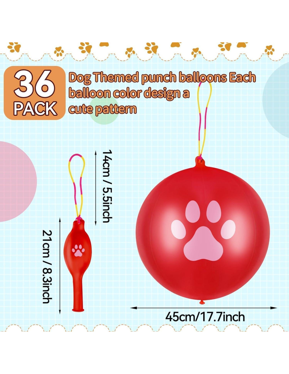 - Cantidad Abundante: Nuestro set incluye 36 piezas de globos de golpe temáticos de perro, ofreciendo una cantidad generosa para asegurar que cada invitado en tu fiesta tenga suficiente diversión. La variedad de globos de golpe permite una mezcla y combinación que añade alegría a cualquier evento.