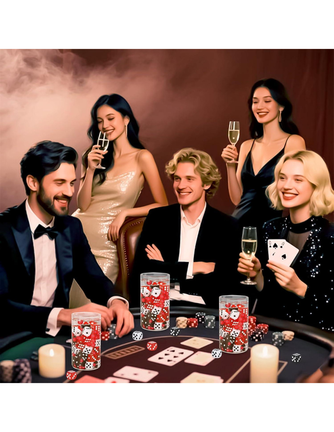 - Uso Decorativo Versátil: Ideales para fiestas de casino, bodas, Navidad y decoración del hogar, estas elegantes decoraciones de noche de casino también funcionan como rellenos de jarrón, portavelas flotantes y acentos de centros de mesa, añadiendo un toque sofisticado a cualquier celebración.