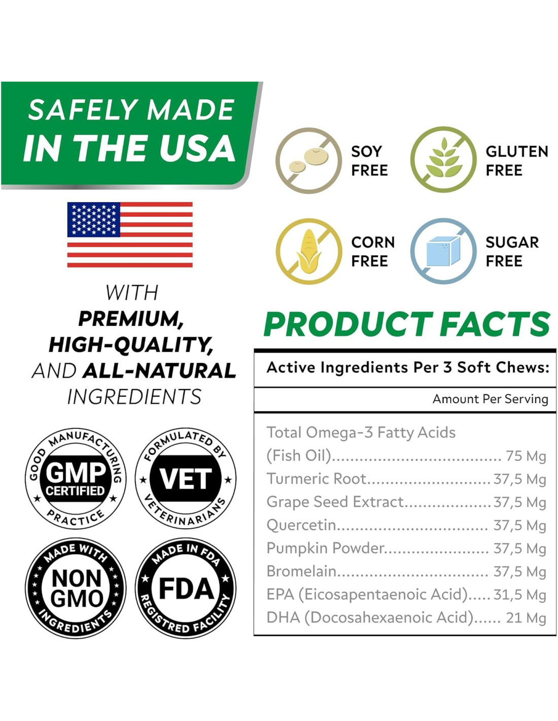 - MEJOR SALUD COMIENZA AQUÍ - Nota una diferencia en la salud de su perro en 2-3 semanas de uso constante. Nuestros masticables combaten efectivamente los síntomas severos de alergia, apoyando la salud del pelaje, la inmunidad general y previniendo puntos calientes y caspa.