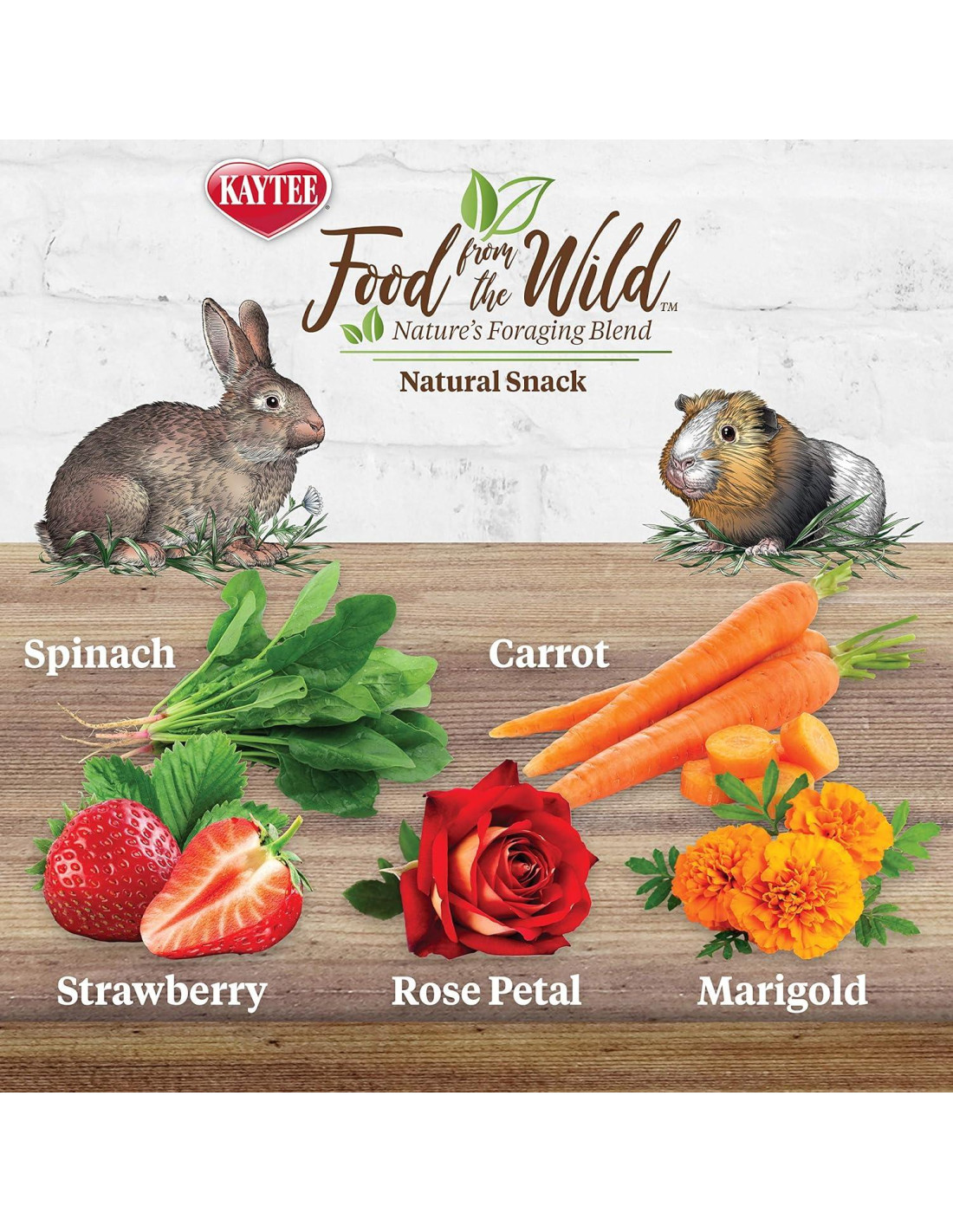 Kaytee Comida de la Naturaleza Snack Natural para conejos, cobayas y otros animales pequeños es una mezcla premium elaborada para traer la variedad que la naturaleza pretendía a la dieta de tu mascota pequeña. Hecho con una cantidad limitada de ingredientes enteros para hacer un delicioso y saludable bocadillo. Sin rellenos, azúcares añadidos, conservantes o colores artificiales, esta mezcla se puede servir a diario como un bocadillo nutritivo o como un complemento a su comida o heno. Esta mezcla contiene zanahoria real, caléndula, pétalos de rosa, espinaca y fresa. Kaytee muestra nuestro amor asegurando que proporcionamos a tu mascota la mejor nutrición para una vida larga y saludable. Con más de 150 años de experiencia nutricional, no es de extrañar por qué Kaytee está en el corazón de cada rutina de alimentación saludable.
