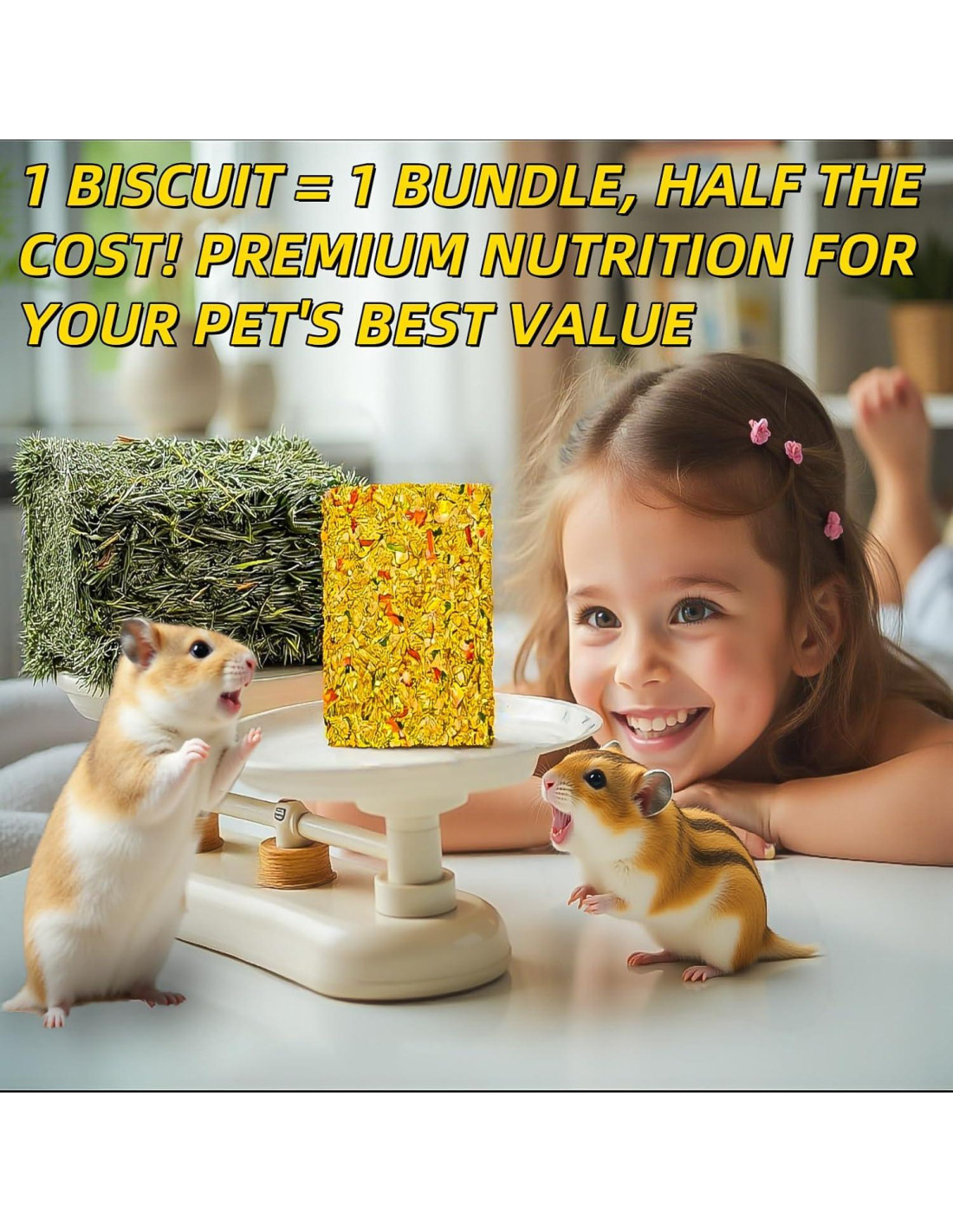 - 2.[1 Snack de Conejo Comprimido3 Cubos de Heno Timothy]: Deliciosos juguetes para cobayas para dientes son prensados en piezas por horneado con aire caliente, con una textura crujiente y ricos sabores que a tu mascota le encantarán en cada bocado. 1pcs juguete nutricional comprimido para conejos 3 pcs cubo de hierba de heno Timothy. Así como comprimir galletas puede hacer que tus pequeños animales se sientan llenos y satisfagan sus necesidades nutricionales.