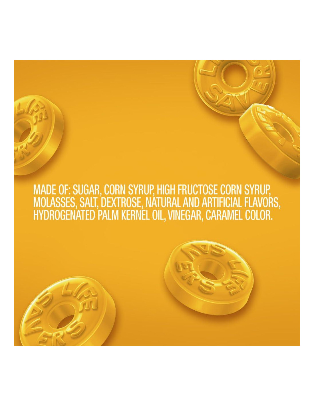 - Contiene cuatro (4) bolsas de tamaño para compartir de 14.5 onzas (411.4 gramos) de dulces duros LIFE SAVERS sabor ron mantequilla