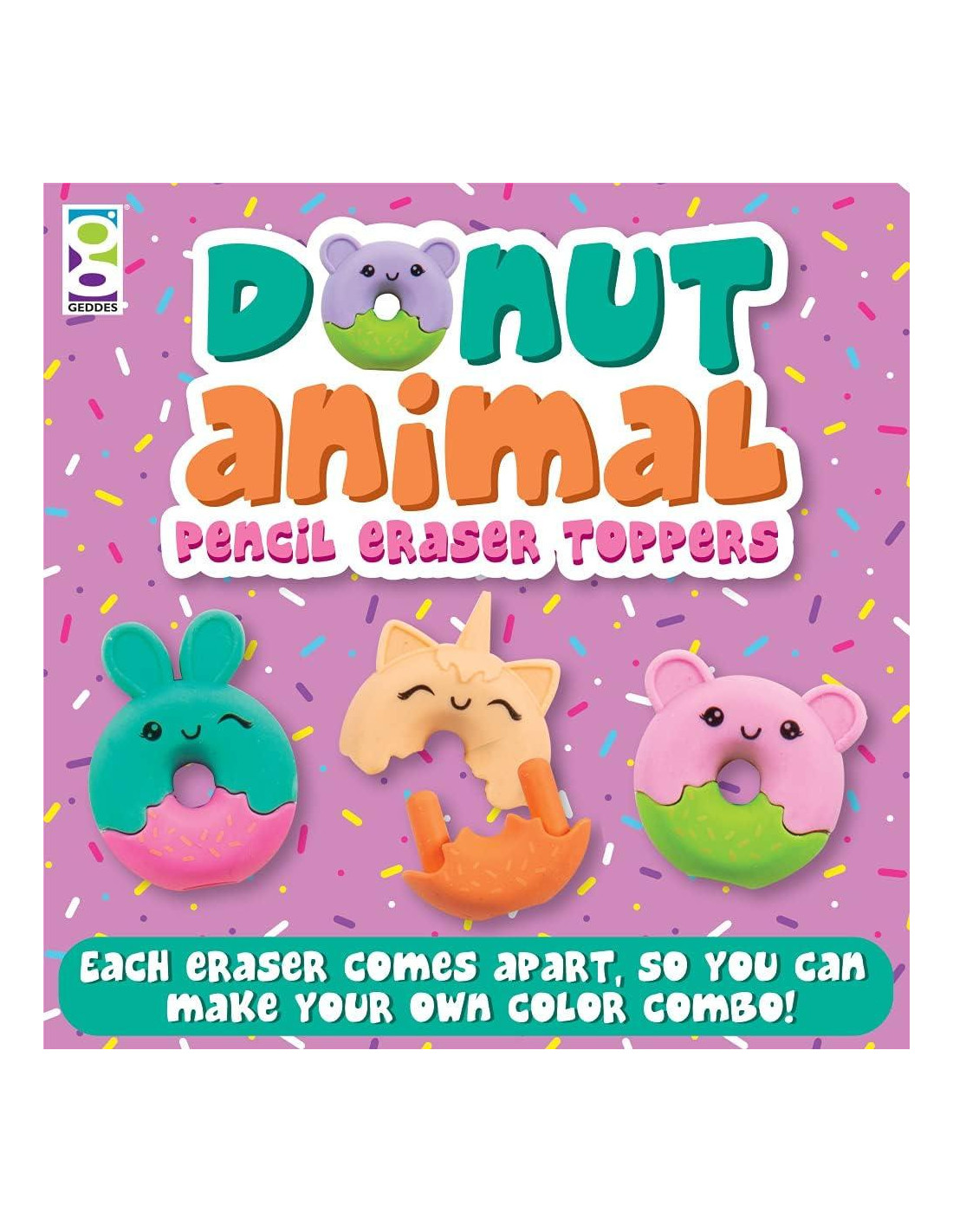 Los borradores de lápiz en forma de dona Raymond Geddes son útiles y adorables suministros de papelería. Cada paquete de 48 incluye unicornios, conejitos y osos y viene en colores de dos tonos: mandarina, violeta, rosa y verde mar. En Raymond Geddes, nuestra misión es proporcionar a estudiantes y adultos bolígrafos, lápices, lápices mecánicos, borradores y otros suministros escolares imaginativos y asequibles diseñados para tiendas escolares, aulas y recaudación de fondos educativos.