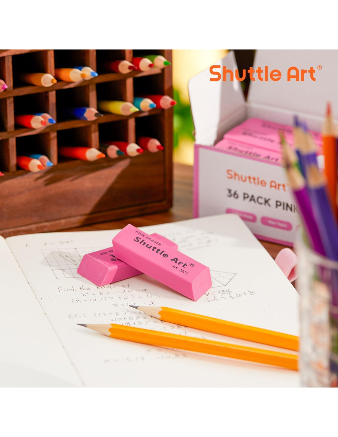 - BORRADO LIMPIO Y RESISTENTE A MANCHAS: Los borradores rosados de Shuttle Art pueden borrar la mayoría de los tipos de marcas de lápiz sin manchar y el material suave no dañará el papel ni dejará marcas de lápiz, la mejor opción para suministros escolares