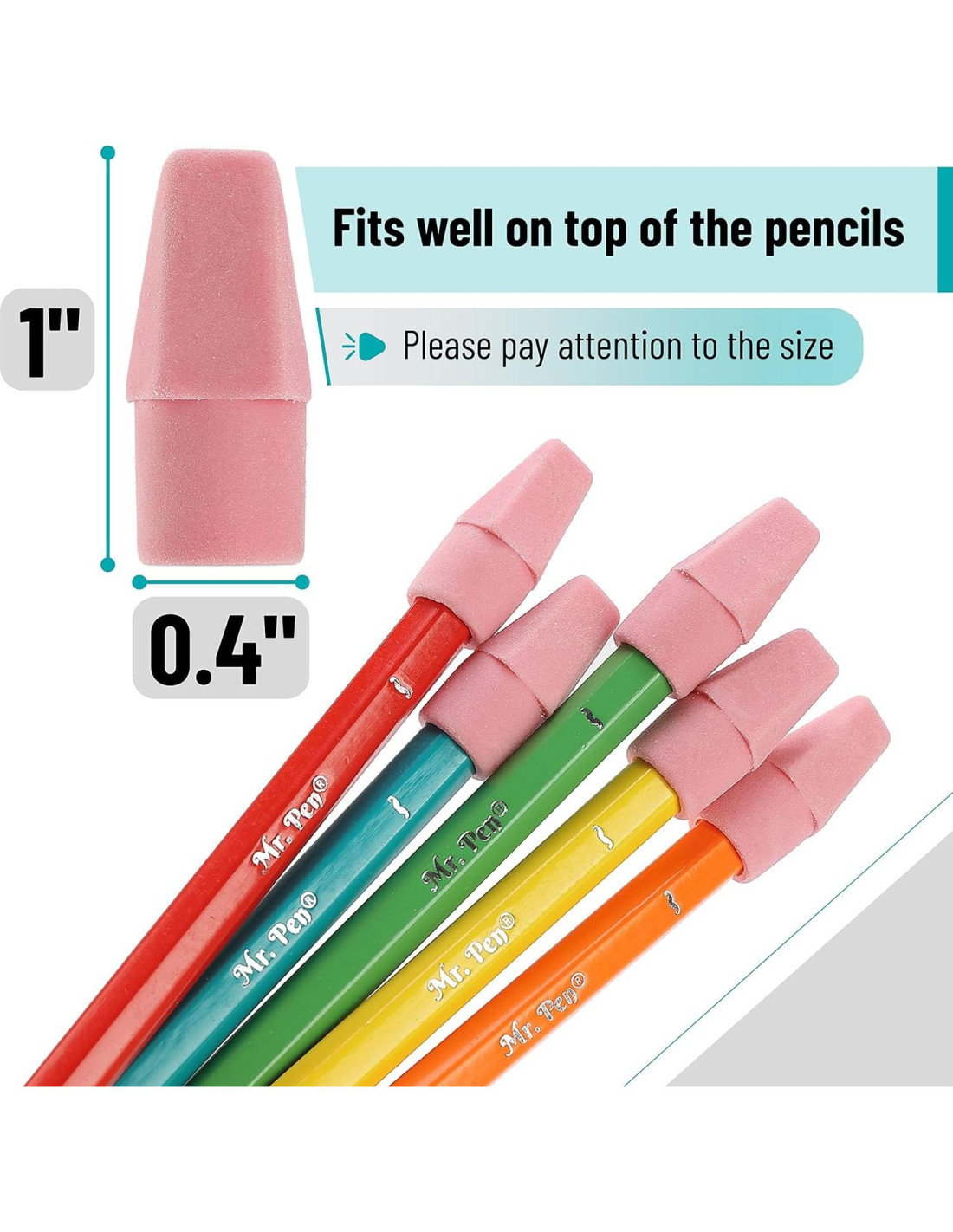 - Los borradores de punta de lápiz Mr. Pen están hechos de goma premium para ofrecer correcciones precisas y sin manchas, y se ajustan sobre el extremo de la mayoría de los lápices estándar.