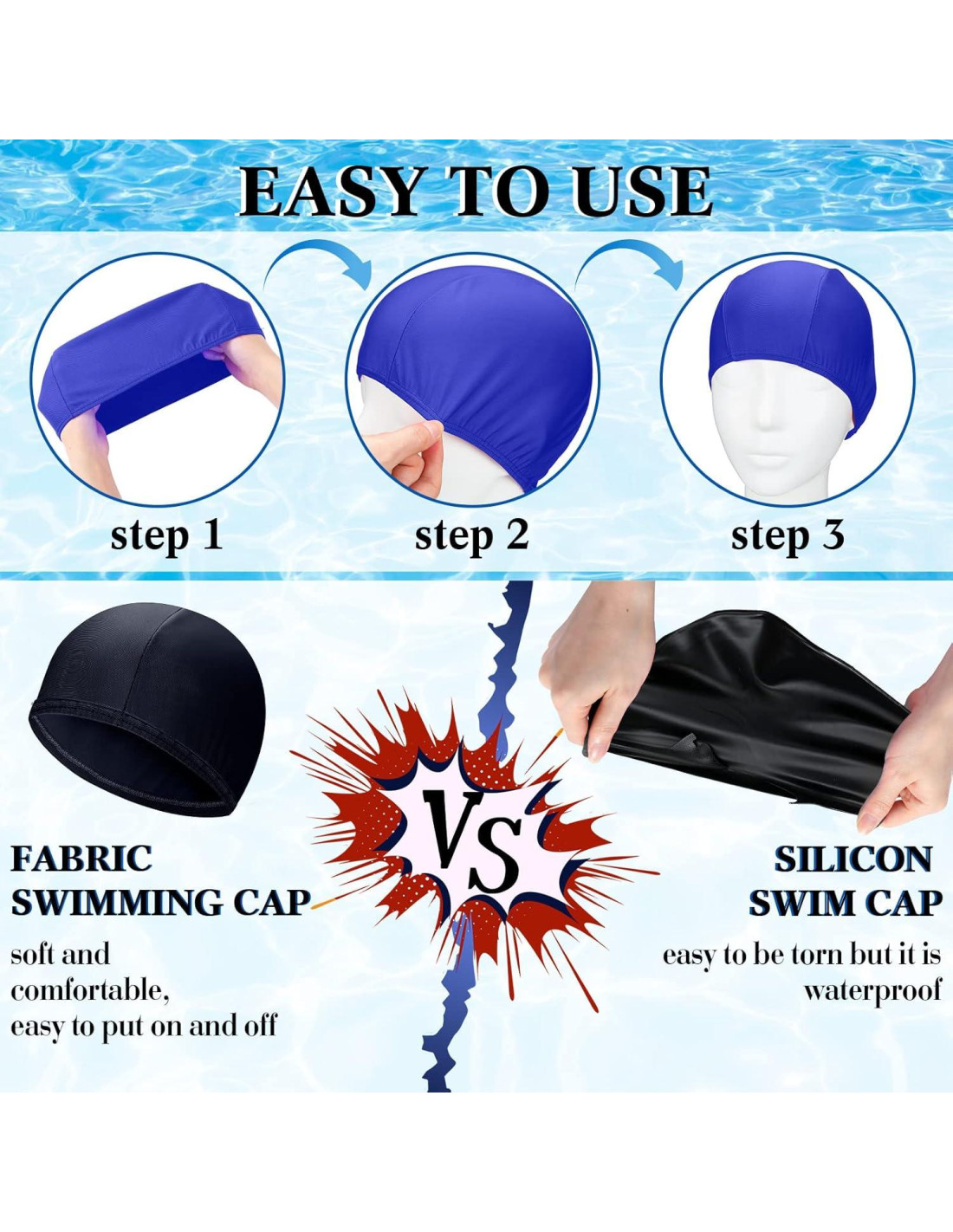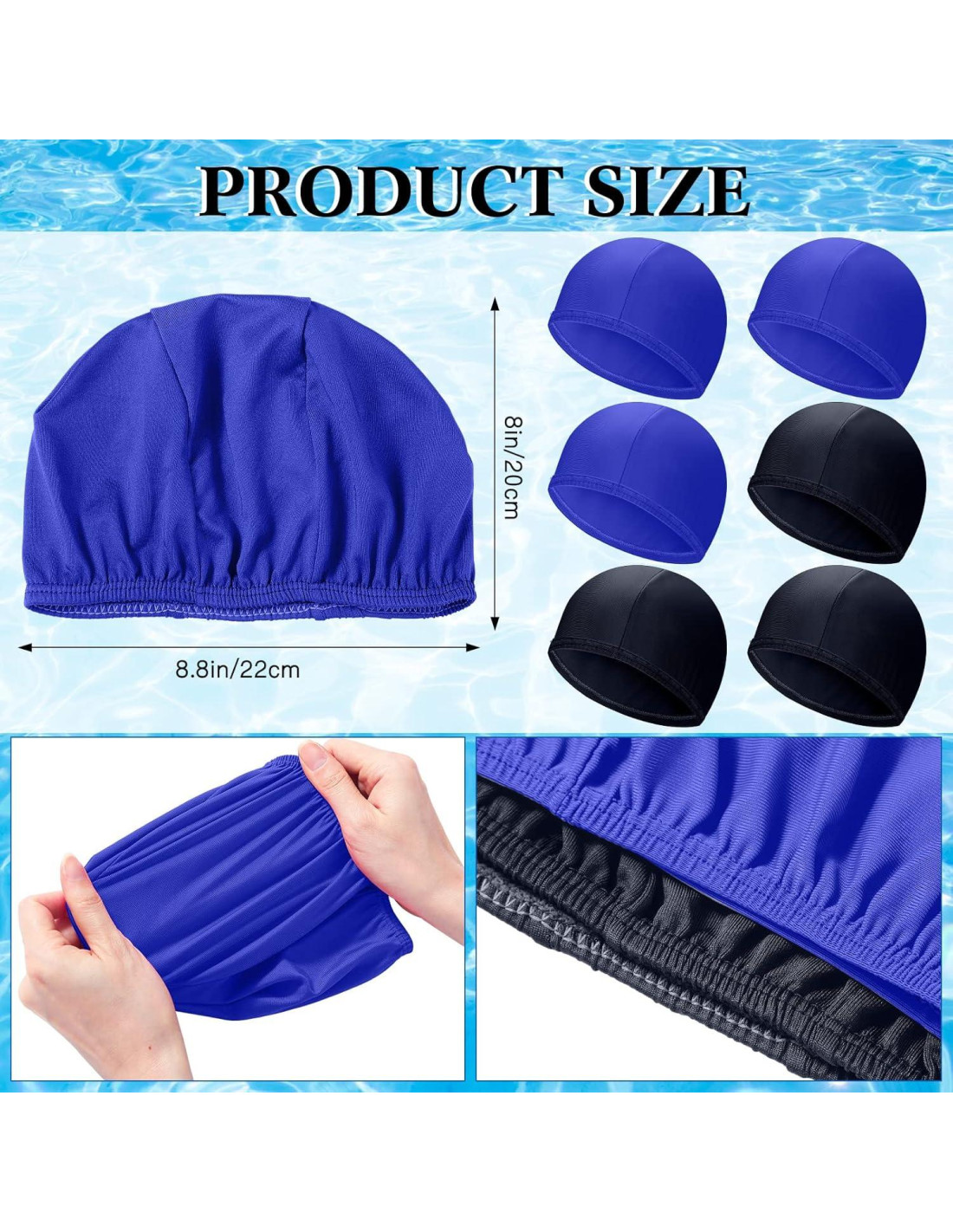 - Múltiples colores para elegir: hay 2 colores de estas gorras de piscina, incluyendo negro y azul oscuro, brindándole suficientes opciones de acuerdo a sus gustos y demandas; También son fáciles de combinar con muchos de sus atuendos