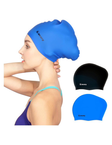 - DISEÑO ESPACIOSO PARA CABELLO LARGO Creado para nadadores con cabello largo, el gorro de natación está diseñado para acomodar y proteger el cabello largo, mayor espacio adecuado para múltiples peinados: cabello largo, a la altura de los hombros, cabello grueso, cabello trenzado y cabello afro, etc.