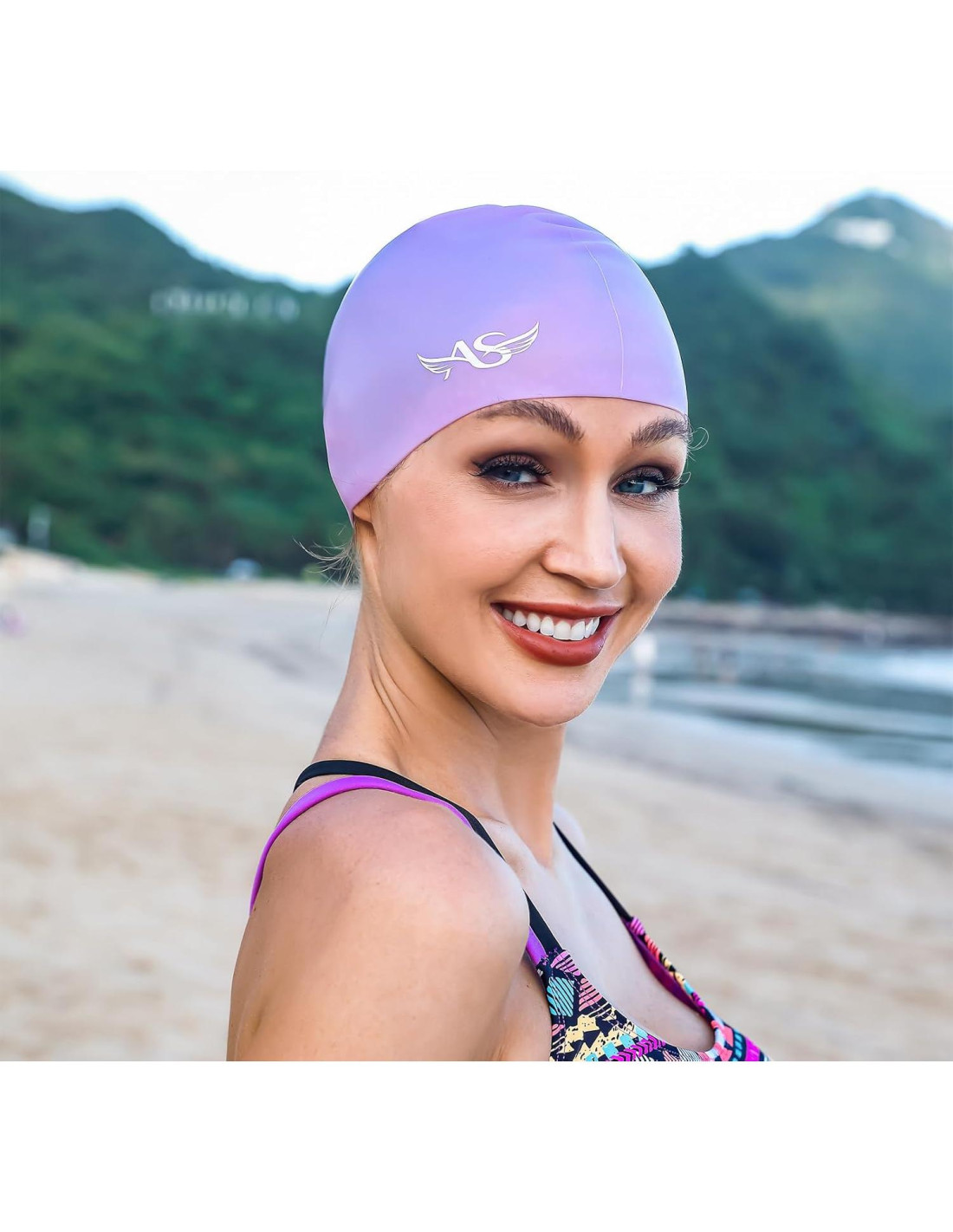 - [Material de silicona seguro] Gorros de natación de silicona premium para máxima elasticidad y durabilidad, no tóxicos, sin olor extraño, sin deformación, secado rápido y sin arrugas. Diseñado para natación en interiores y exteriores.