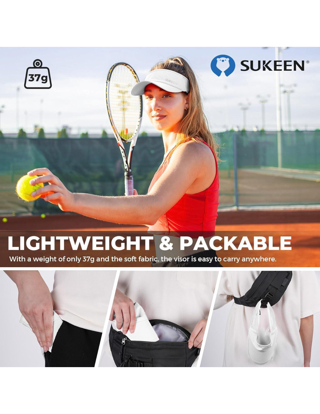 - LIGERA Y PLEGABLE: La Visera Deportiva Ligera Sukeen está hecha con materiales ligeros, incluyendo un material HDPE superior para la visera. Con un peso de solo 37g (0.08 lb), esta visera proporciona comodidad duradera sin presión en la cabeza. Además, su tela suave permite un fácil almacenamiento en una bolsa o bolsillo, lo que la convierte en una opción ideal para actividades al aire libre en movimiento.