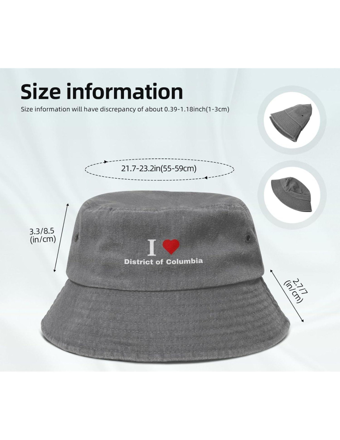 - MATERIAL CÓMODO - Hecho de 100% algodón lavado, este sombrero de cubo Me Encanta el Distrito de Columbia es suave, duradero, transpirable y cómodo de llevar en la mayoría de las estaciones. Talla única para la mayoría.