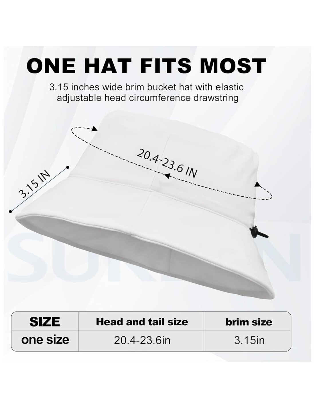 - [Talla Única para la Mayoría] Con el diseño de cordón ajustable, el sombrero de cubo tiene una circunferencia de cabeza ajustable de 52-60 cm (20.4-23.6 in), que se adapta a la mayoría de las cabezas. El cordón se puede ajustar para que el sombrero se adapte mejor a la forma de tu cabeza.