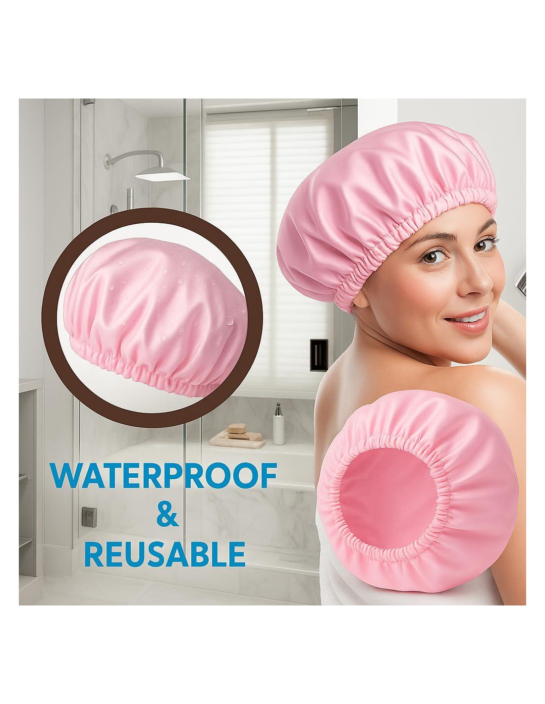 - [GORRO DE DUCHA SEGURO PARA EL ESTILO] - Nuestro gorro forrado de satén resistente al agua protege tu cabello de la humedad y la humedad. Ideal para preservar rizos, alisados o cualquier estilo - despierta impecable todos los días.