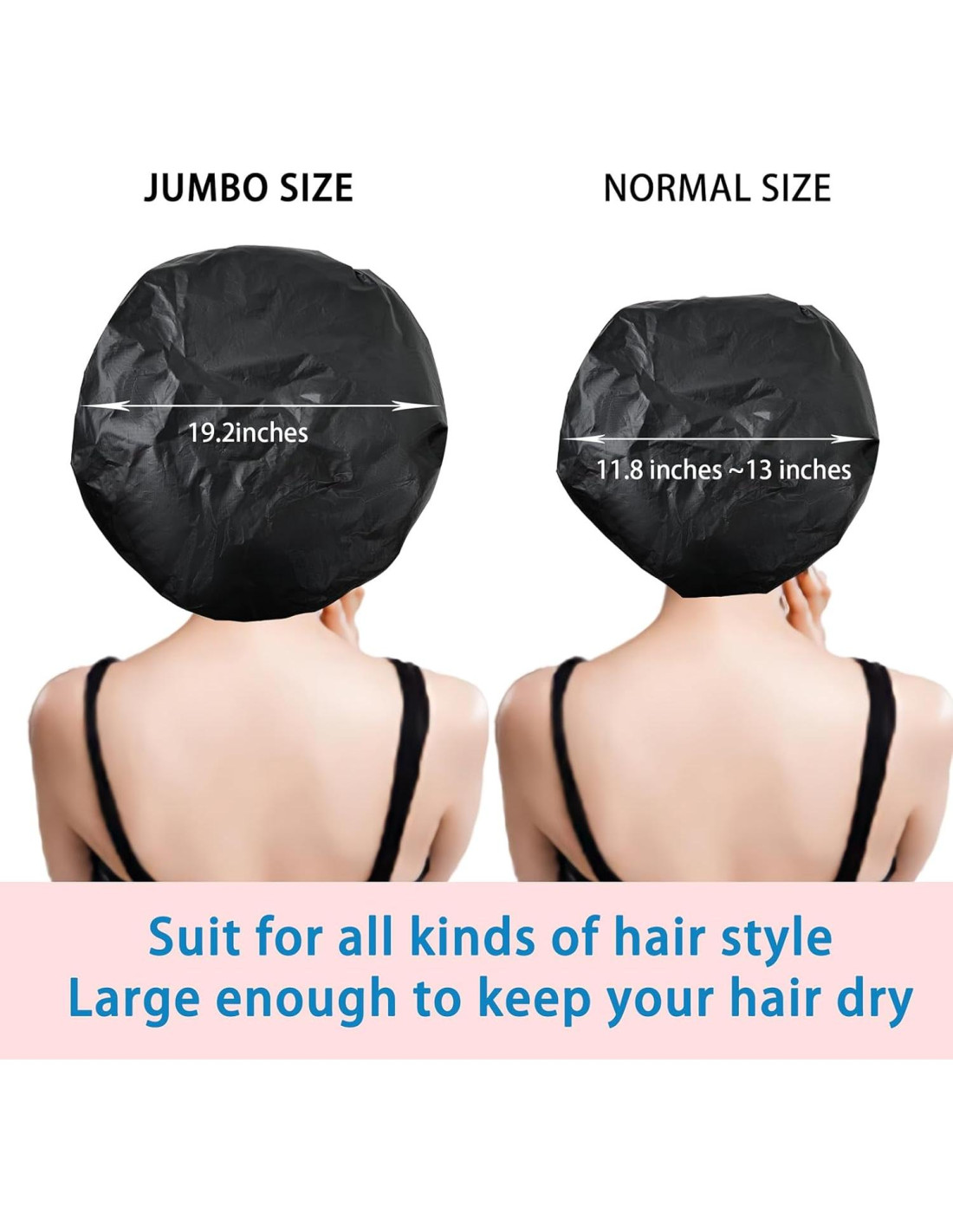 - GORROS DE DUCHA JUMBO IMPERMEABLES - Hechos de materiales PEVA premium resistentes al agua y amigables con la piel, nuestro gorro de ducha reutilizable impermeable puede mantener efectivamente tu cabello seco durante duchas o baños. Mejora tu experiencia de ducha.