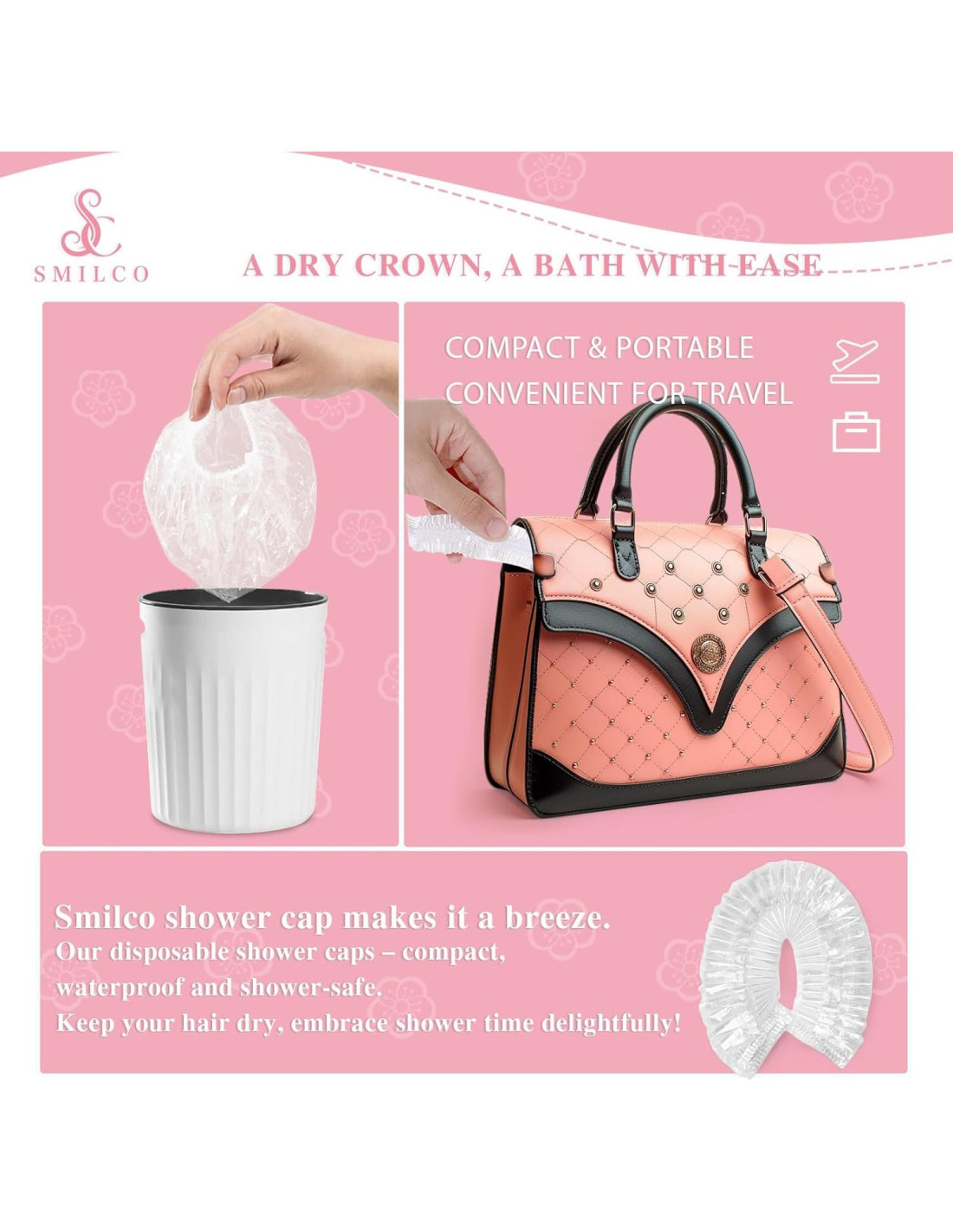 - Elegante y Práctico: Los gorros de ducha Smilco son accesorios imprescindibles para mujeres. Estos gorros de ducha desechables ofrecen un diseño ligero y resistente al agua para mantener el cabello seco durante las duchas. Y te brindan gran conveniencia para tu vida diaria.