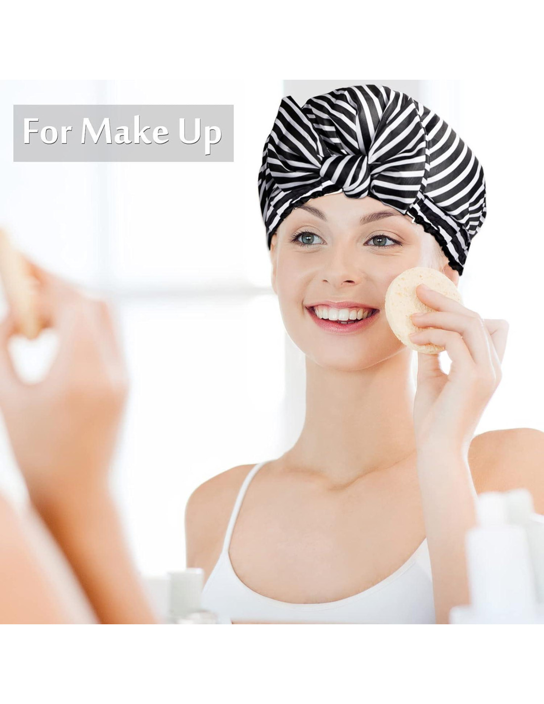 - Calidad de Material Estilosa y Práctica: estas gorras de baño vienen con estilos adorables, una está hecha de material de nylon suave, la otra está hecha de material de satén, e impermeable, mantienen adecuadamente el agua fuera durante las duchas, también son ligeras y cómodas de usar, lavables y reutilizables, pueden aplicarse múltiples veces