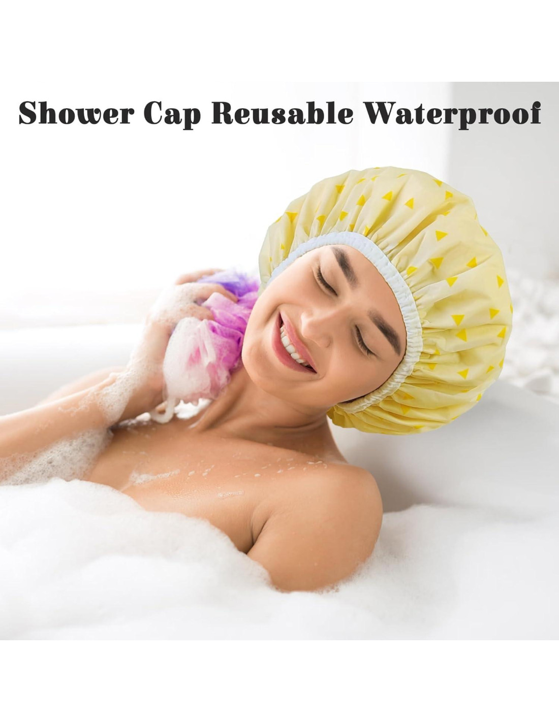- Gorro de Ducha Reutilizable Impermeable de Doble Capa: Este gorro de ducha para mujeres tiene un diseño de doble capa con una capa exterior impermeable, que es elegante y práctico. No solo mantiene tu cabello seco mientras disfrutas de tu ducha, sino que también asegura que tu peinado permanezca suave, limpio y ordenado mientras duermes. Varios colores te dan más opciones para combinar con tu pijama.
