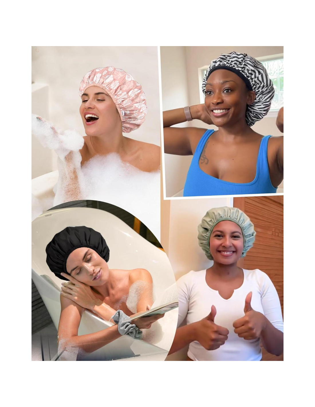 - Calidad y funcionalidad en uno: Nuestros gorros de ducha para mujeres son reutilizables, impermeables y cómodos. Están hechos con poliéster y silicona de alta calidad, para mantener el cabello seco