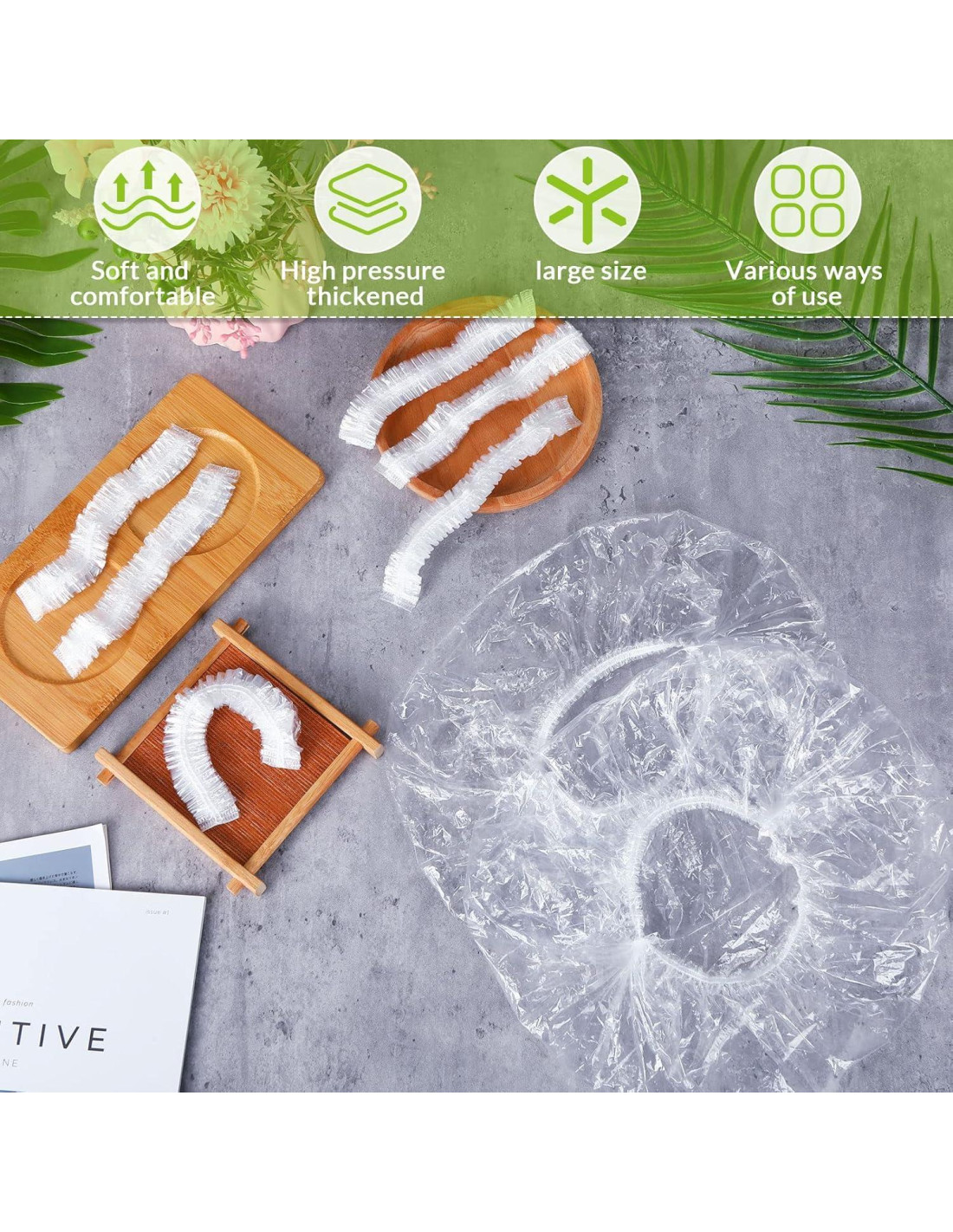 - Amplia Aplicación: las gorras de plástico para el cabello no solo se pueden aplicar para duchas, salones de cabello, cocina, sino que también se pueden usar como cubiertas para zapatos, mangas de gorra y más, brindando comodidad para tu viaje, camping y otras actividades al aire libre