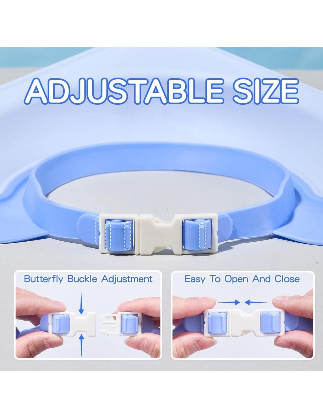 - CÓMO USAR: Lleva un gorro de ducha para bebé después de ajustar el tamaño del gorro, para que se ajuste a la cabeza del bebé, la parte frontal del visor de baño es alta y la parte posterior del gorro es baja, la parte posterior del gorro de ducha para niños lo más cerca posible del cuello del bebé, para que al usarlo no se caiga y no haya filtraciones, protegiendo eficazmente los ojos y oídos del bebé.