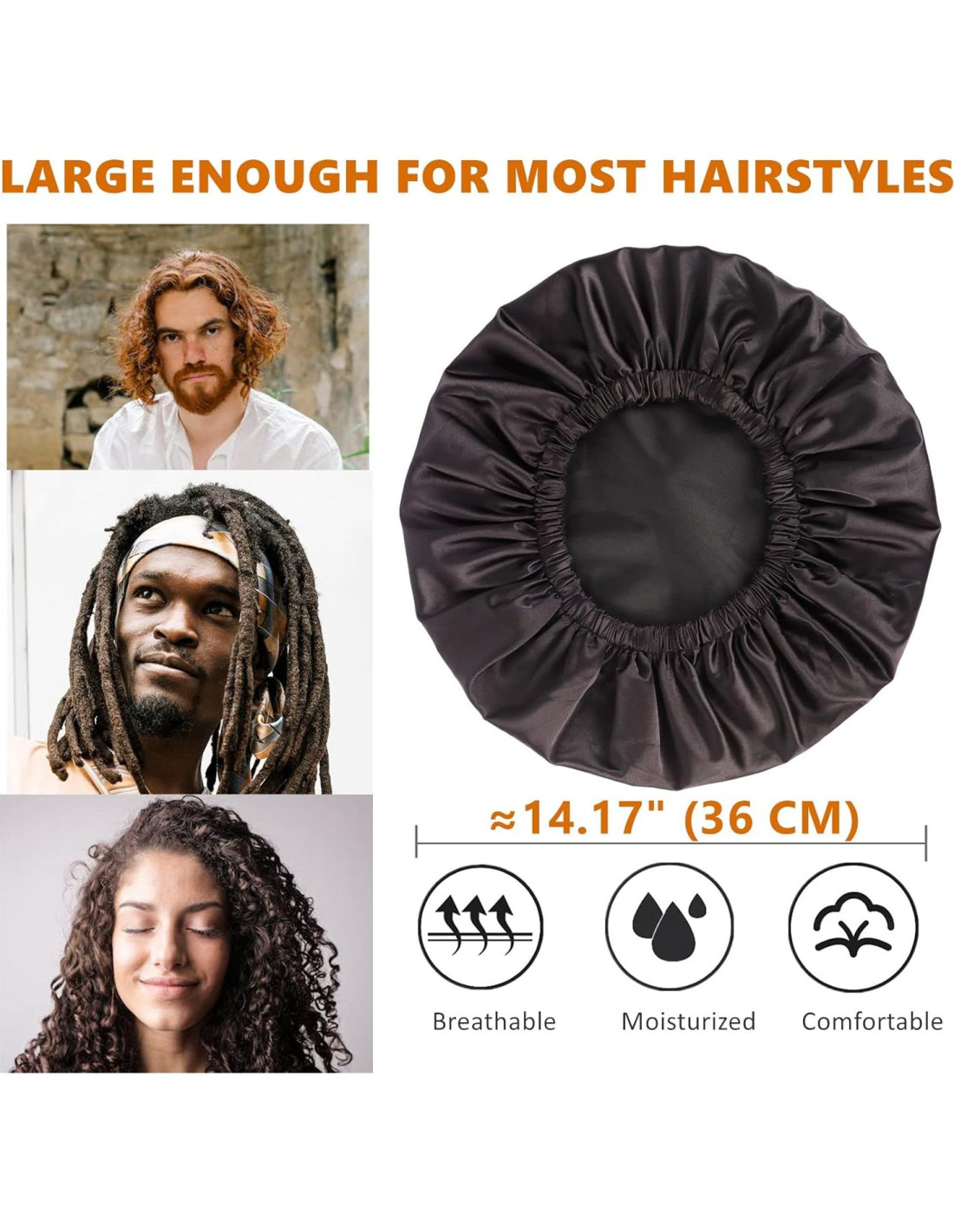- Gorro de Ducha Grande para Mujeres/Hombres - Una Talla se Ajusta a la Mayoría de los Estilos de Cabello: El diámetro exterior del gorro de ducha para cabello es de aproximadamente 35.88 cm. Suficientemente espacioso para la mayoría de los estilos de cabello como trenzas, cabello natural, locs falsos, cabello rizado, dreadlocks, dreads, locs, afros, extensiones, rulos, bobs y peinados recogidos. Protege tu glorioso cabello con nuestros gorros de ducha.