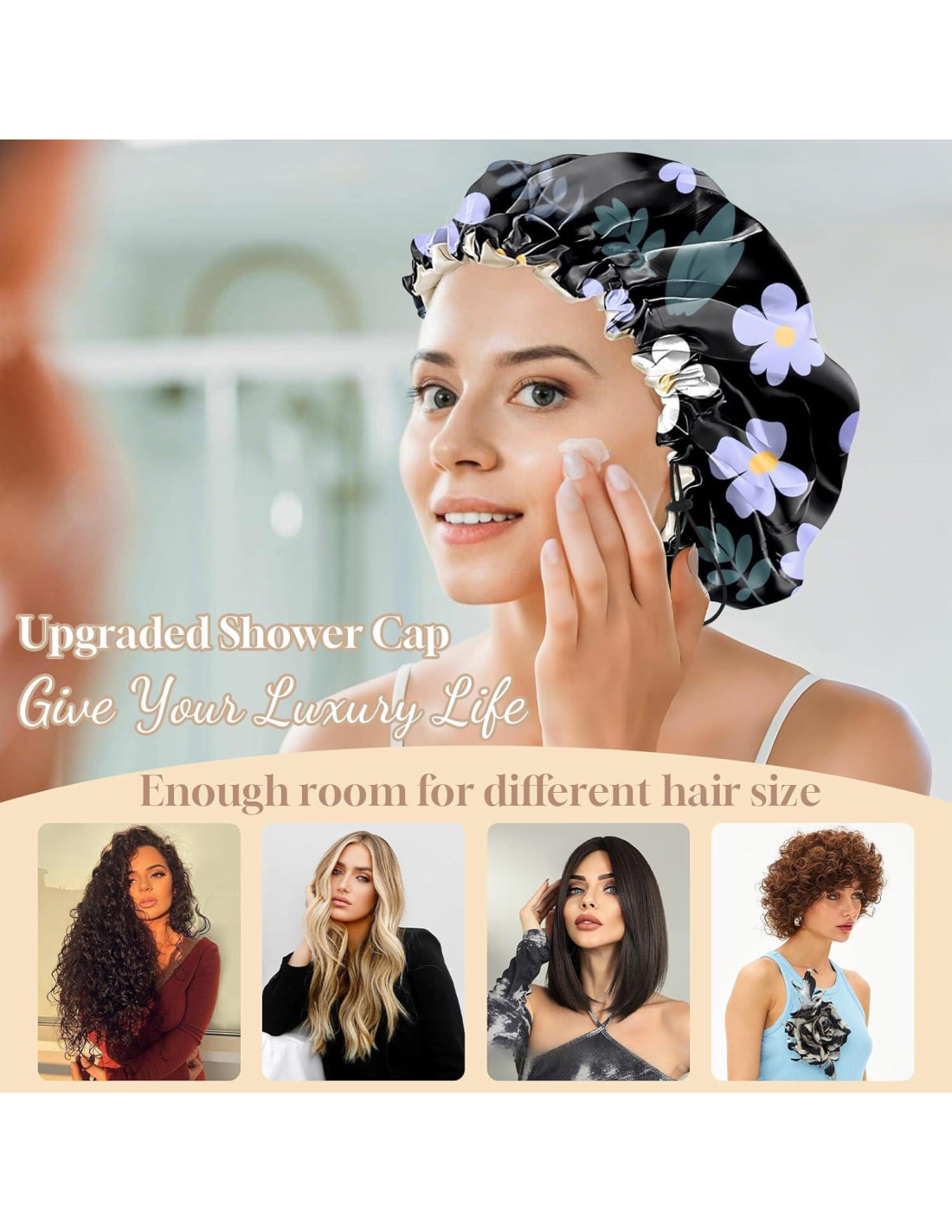 - [Diseño de Doble Capa] El gorro de ducha está hecho de tela impermeable de capa exterior y el forro interior es de satén suave y liso. Es un gorro de ducha que realmente no moja tu cabello, que se desliza suavemente sobre el cabello para protegerlo de la sequedad causada por la fricción, reduce el frizz, los enredos y el adelgazamiento del cabello.