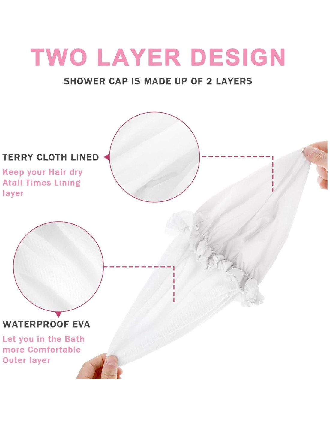 - [Protección de Doble Capa] Los gorros de ducha reutilizables para mujeres cuentan con un diseño de doble capa con un forro de paño de toalla que utiliza paño de toalla de microfibra absorbente y una capa exterior de EVA impermeable. Esta combinación asegura que tu cabello se mantenga seco y sin frizz durante las duchas o baños, proporcionando una protección integral y mejorando tu experiencia de ducha.