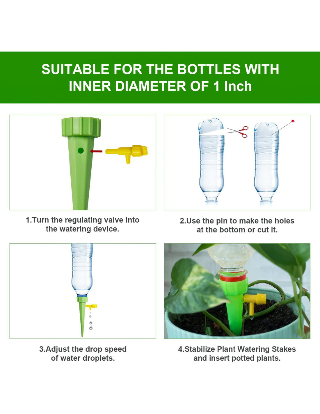 - [ECO-AMIGABLE Y DURADERO] Los dispositivos de riego para plantas están hechos de plástico de alta calidad y se pueden usar repetidamente. La regadera para plantas de exterior tiene alta resistencia y dureza, buena resistencia al calor y al frío, segura y duradera. Recicle botellas de plástico de manera efectiva. Reduzca los desechos y proteja el medio ambiente.