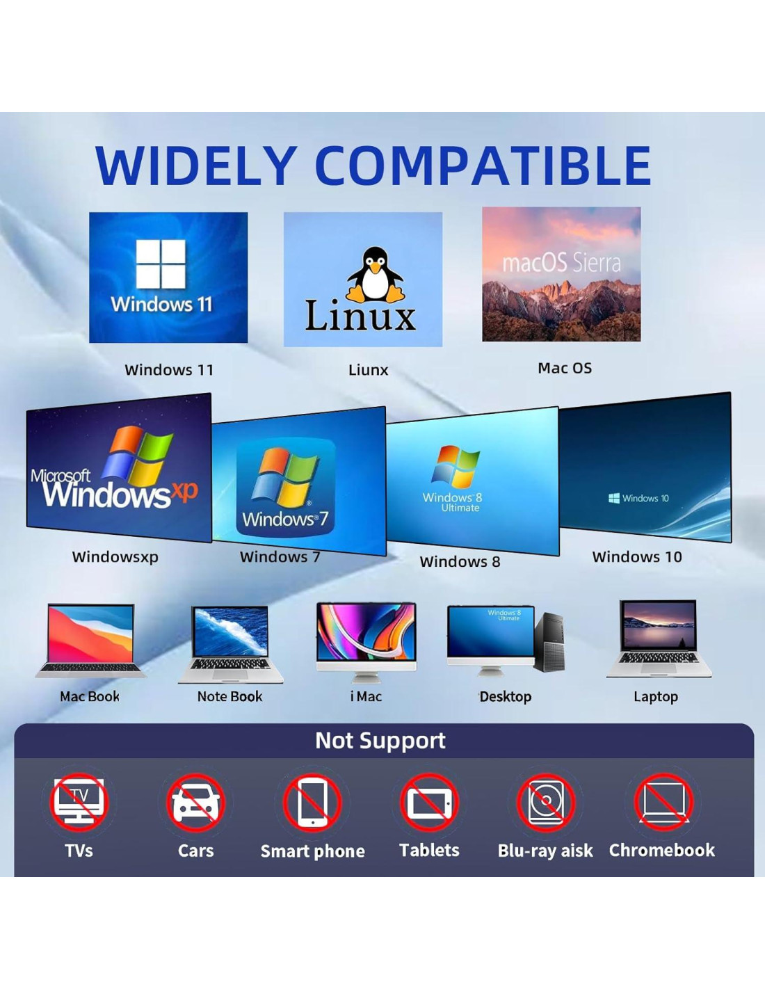 - [Amplia compatibilidad] - Soporta lectura y escritura de CD+/-R/RW, CD-ROM, DVD+/-R/RW, DVD-RAM, VCD y SVCD. La unidad de DVD externa para portátil es compatible con Windows 11/10/8/7, Linux, Mac OS y otros sistemas. (Nota: iPad, teléfonos, Chromebook, TV, coches, Blu ray no son compatibles)