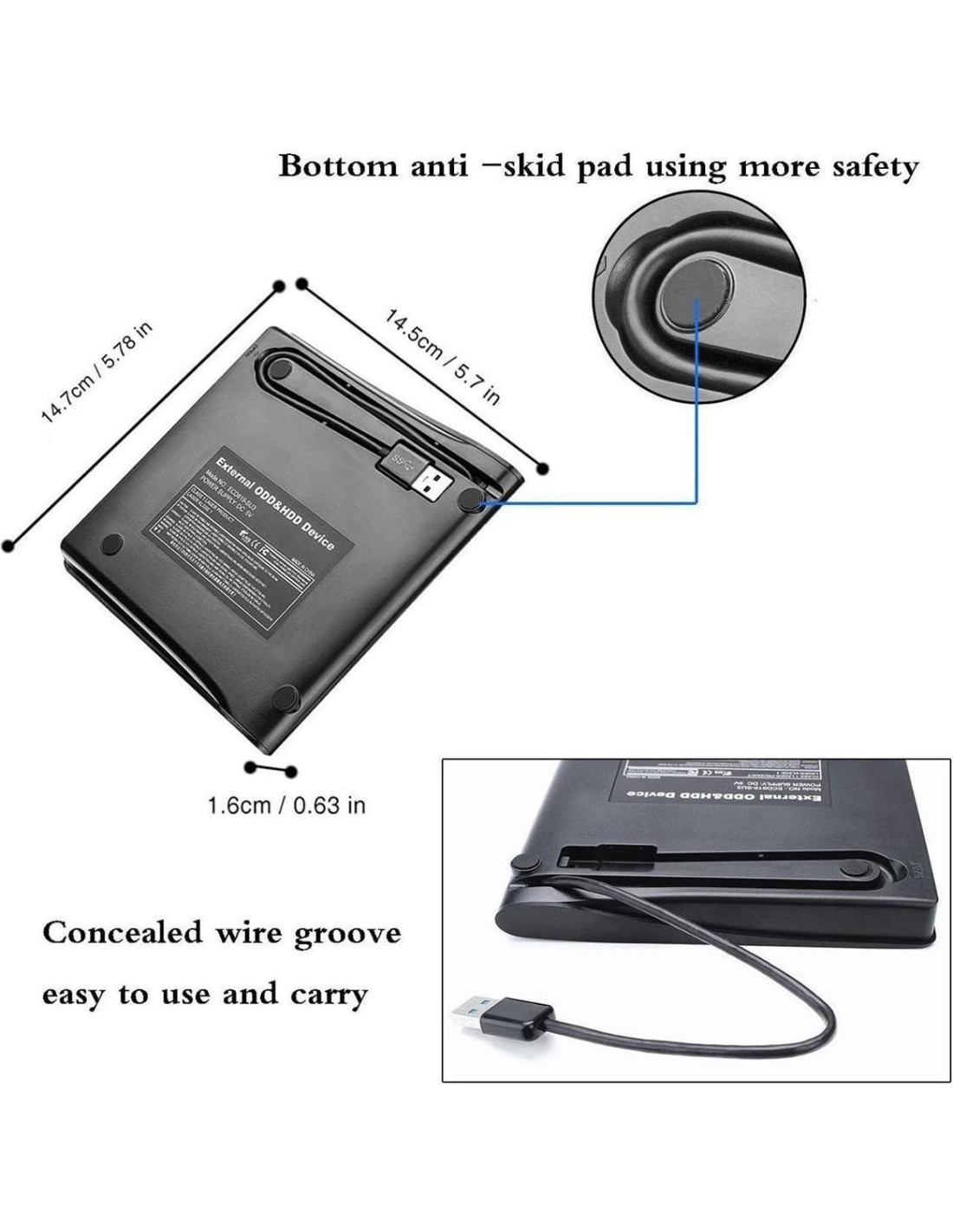 - El dispositivo de 9.5 mm está equipado con un chip original interno. Este disco duro es extremadamente delgado, ligero, compacto y muy fácil de transportar debido a su peso de solo 250g, además de tener un diseño noble y moderno, esta grabadora/lectora/burner de CD/DVD también tiene una superficie resistente a rayones