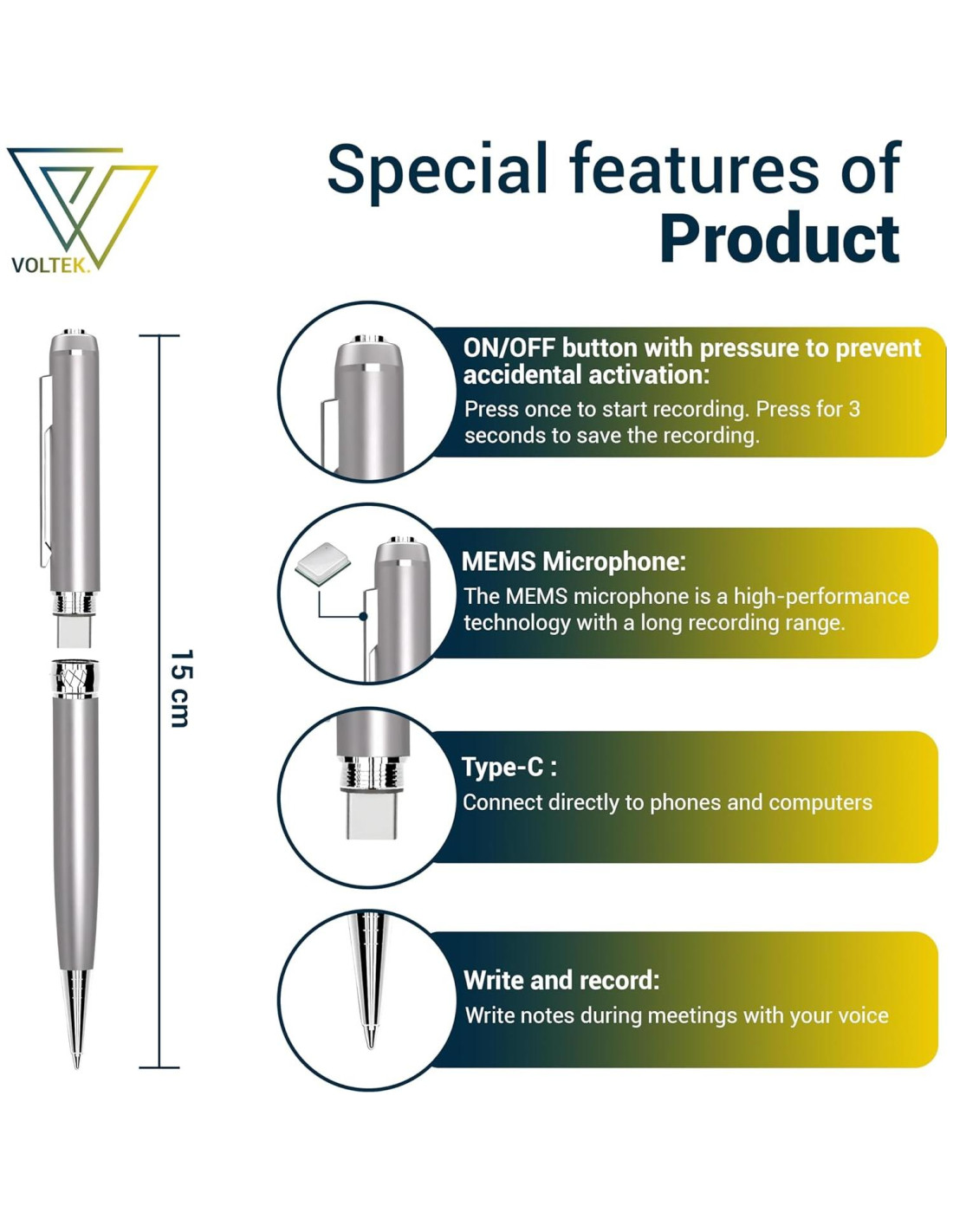 - PUERTO USB-C INCLUIDO, NO SE NECESITA CABLE - TRANSFERENCIA PLUG AND GO, recarga y escucha sin esfuerzo. Este bolígrafo de grabación USB-C se conecta directamente a tu dispositivo, eliminando la necesidad de cables. Incluye un adaptador de USB-C a USB para una mayor compatibilidad. Diseñado para un uso sin problemas, esta grabadora de voz digital es intuitiva, compacta y perfecta para necesidades personales o profesionales.