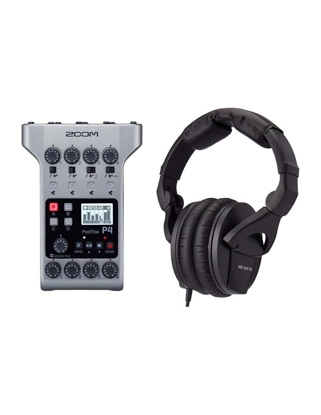 Grabadora de Podcast Zoom PodTrak P4, Alimentada por Batería, 4 Entradas de Micrófono, 4 Salidas para Auriculares, Entrada de Teléfono para Entrevistas Remotas, Pads de Sonido, Interfaz de Audio 2-In/2-Out. Grabadora de Podcast Portátil Zoom PodTrak P4, Alimentada por Batería, 4 Entradas de Micrófono, Entrada de Teléfono para Invitados por Llamada, Entrevistas Remotas, 4 Salidas para Auriculares, Pads de Sonido, Grabación Multicanal, Interfaz de Audio para grabación y transmisión. Auriculares de Monitoreo Sennheiser Profesional HD 280 PRO. Los HD 280 PRO son un par de auriculares estéreo cerrados y dinámicos que ofrecen una reproducción de sonido precisa y lineal con atenuación de ruido ambiental para aplicaciones de monitoreo crítico. La impedancia óptima asegura compatibilidad universal, desde la escucha en casa hasta el monitoreo en estudio. El diseño que ahorra espacio cuenta con copas de oído plegables y rotativas que son muy cómodas de usar, incluso si se utilizan durante largos períodos de tiempo. Las almohadillas de los HD 280 PRO están hechas de un cuero sintético.